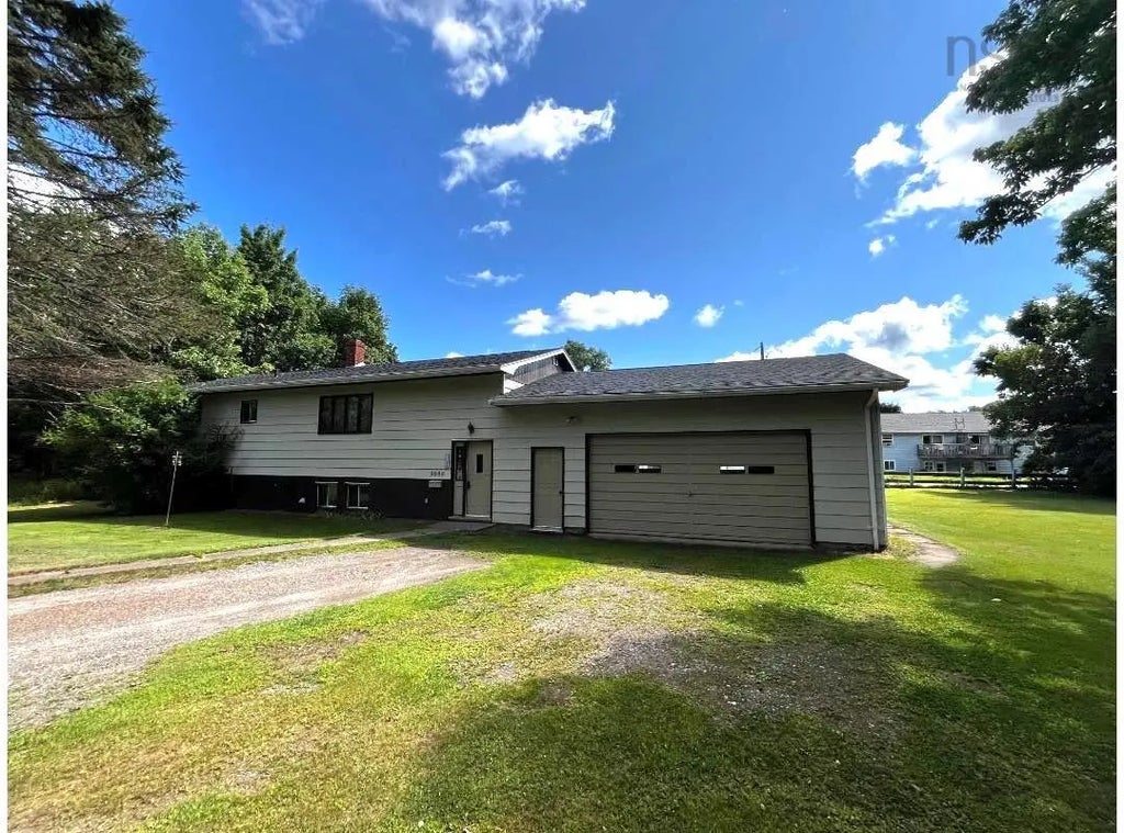 Welcome to this solidly built 3-bedroom, 2-bath home on Highway 1, conveniently situated between New Minas and Wolfville. Just minutes from New Minas amenities and highway access, this property offers a prime location on over an acre of land with more than 1,700 square feet of living space. The main floor features a bright, large eat-in kitchen, a spacious 19x13 living room, two generously sized bedrooms, and a smaller bedroom ideal for a single bed or office. The basement includes a half bath, a sizable laundry room with potential for a fourth bedroom, and a 33x12 rec room perfect for entertaining. Updates include new roof shingles (2019), a fiberglass oil tank, and rear deck steps. An attached double-car garage adds convenience, and there is potential to subdivide the front parcel for a separate building lot. Bring your personal touches to this home and make it yours.