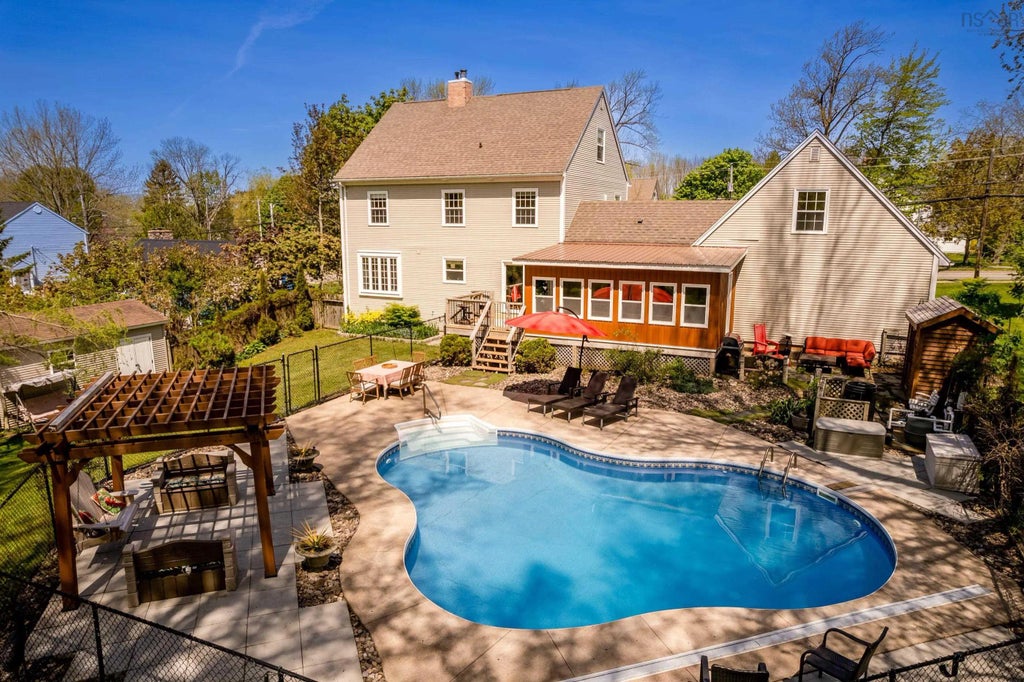 Welcome to 53 Main Street, a spacious and well-maintained family home with impressive features. This architecturally designed home, within walking distance to Acadia, is ready for a new family. The heart of the home is the inviting live-in kitchen, complete with heated floors and a stunning view of the backyard. The main level also offers a study, living room, and dining area, all enhanced by a dual-facing propane fireplace. Sliding doors off the kitchen provide easy access to the deck and backyard, creating a seamless indoor-outdoor living experience. Speaking of the backyard, it is truly amazing! It backs onto the Park land, offering ample space for leisurely walks and even winter pond skating. But the fun doesn't stop there. The property also features a 8-foot deep pool with a retractable solar blanket and an infrared sauna, perfect for relaxation and enjoyment. A bright sunroom addition with a metal roof provides a year-round retreat where you can embrace the beauty of the outdoors while remaining sheltered. It's the perfect spot to unwind and soak up the natural surroundings. Upstairs, you'll find three well-sized bedrooms, including a primary bedroom with an en-suite bathroom featuring a soaker tub and shower. The bedrooms offer ample storage space, and there's even a third-floor area that can be used for crafts and hobbies. If needed, this space can be easily converted into 2 extra bedrooms. But wait, there's more! This property also offers a secondary suite above the garage, complete with a kitchenette, bathroom, and walk-in closet. It's a versatile space that can accommodate friends and family. Heading down to the lower level, you'll discover a spacious family room with a cozy wood stove, a laundry room with a bathroom, as well as ample storage space. There's also a utility room/workbench area. With its impressive features and functionality, this property truly stands out as an exceptional family home.