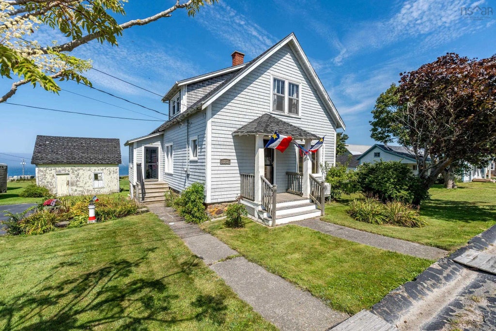 Welcome to this charming 3-bedroom, 1-bathroom home nestled in the heart of Meteghan—perfect for the first-time homebuyer seeking comfort, convenience, and character. This delightful property offers a wonderful blend of traditional charm and modern practicality, making it an ideal choice for those entering the housing market. On the main floor, you'll find a large eat-in kitchen that serves as the heart of the home, perfect for family meals and gatherings. The living room provides a cozy space for relaxation, while a separate laundry room adds to the home’s functionality. The newly built full bathroom on this level is both convenient and stylish, offering modern comforts within this charming home. Upstairs, the generously sized master bedroom is a true retreat, featuring an exclusive 12'x10'3 deck where you can enjoy breathtaking views of St. Mary’s Bay. Two additional bedrooms provide ample space for family or guests. The home features a charming mix of original hardwood, ceramic, and softwood flooring, adding warmth and character throughout. For added convenience, the property is connected to the municipal septic system. Outside, a spacious storage shed offers ample room for all your tools and outdoor equipment. The property also boasts great curb appeal, with its welcoming exterior and well-maintained surroundings. Situated in a great location close to all amenities, this home offers an excellent opportunity for first-time buyers to embrace a comfortable and picturesque lifestyle in Meteghan. Don’t miss out on making this gem your very own!