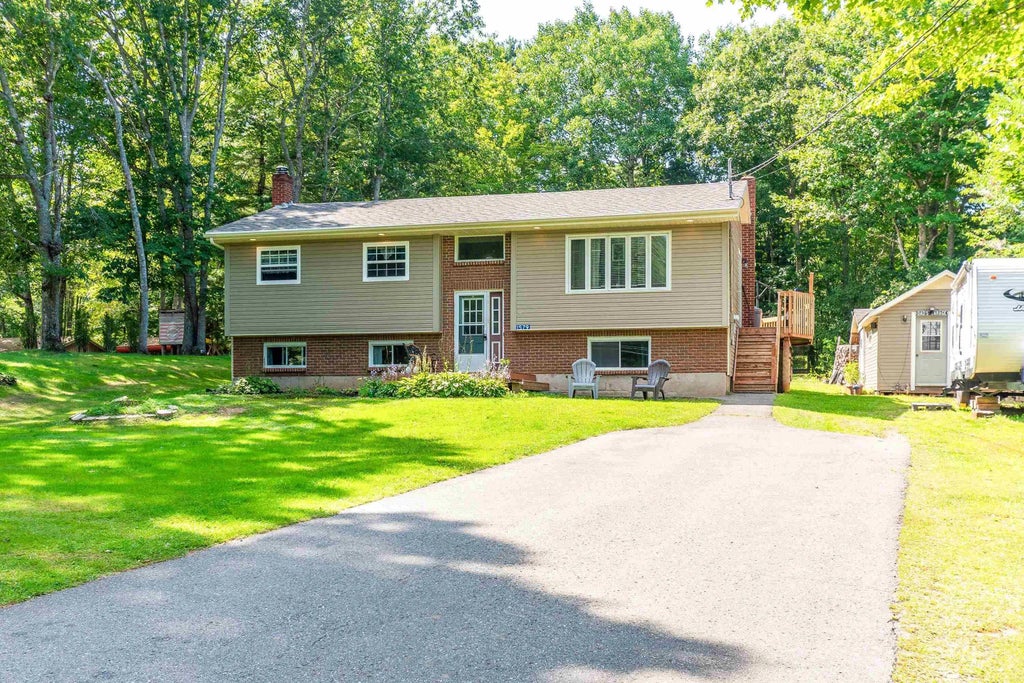 Welcome to this well kept Split Entry with 4 bedrooms and 2 baths. The main floor features kitchen with island; dining room with patio doors to covered-in porch; living room; 4pc bath; three bedrooms. Downstairs has family room with wood stove; large bedroom; 3pc bath; bedroom/office and a utility/storage room. Laminate flooring throughout both floors. Oil fired hot water baseboard heat with wood stove backup. All systems are in good working order. Front 10 x 8 deck as well as covered porch and wrap-a-round deck on West and North side of home. Property is nicely landscaped with double paved driveway. 26 x 12 shed/workshop that is wired and two portable sheds that will remain. Five appliances included. Come view this lovely family home.