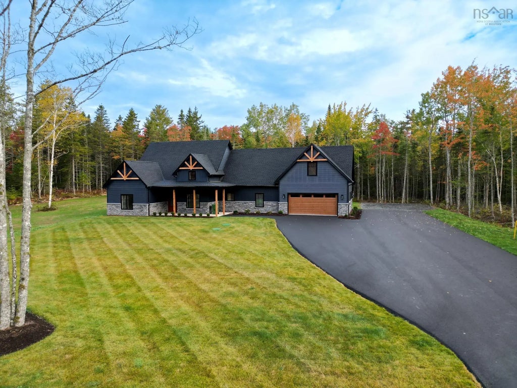 Welcome to 28 Justyne Marie Lane. This custom high-end home showcases luxury and elegance and even offers deeded access to Grand Lake! This stunning new construction home features 3 bedrooms 2.5 bathrooms each with impeccable attention to detail. The open-concept kitchen, living, and dining area boasts vaulted ceilings with beams, creating an airy, expansive feel. Featuring high-end stainless appliances, marbled white and gold quartz countertops, and a custom island with a breakfast bar. The walk-in pantry with shelving and mini fridge adds convenience, while the large electric fireplace and double doors to the covered back patio make this space perfect for entertaining. The garage entryway offers built-in storage, a half bath, and a spacious laundry room with sink. The master bedroom is a true retreat, featuring an ensuite with marbled white and gold tile and countertops, gold hardware, a custom walk-in shower, double vanity, and a large walk-in closet. The bright office with a vaulted ceiling, two additional bright bedrooms, and the full bath complete this captivating main level. Upstairs, a large rec room over the double attached garage provides extra space, storage, and an additional heat pump. Set on a beautiful 2.15-acre partially landscaped lot, this home features a lush front lawn and a grass-seeded private backyard. The large freshly paved driveway offers plenty of parking, and the private paved road with only four homes ensures tranquility. Additional outdoor features include a covered porch and patio, space for a detached garage, and power supply for a pool and hot tub. Additional extras include an attached double garage with an epoxy floor, generator meter base hookup, propane boiler for in-floor radiant heat and domestic hot water, extra floor insulation and spray foam on exterior walls, propane BBQ hookup, and CoreTec Pro Series wide plank vinyl flooring throughout. This exceptional home is a must-see!