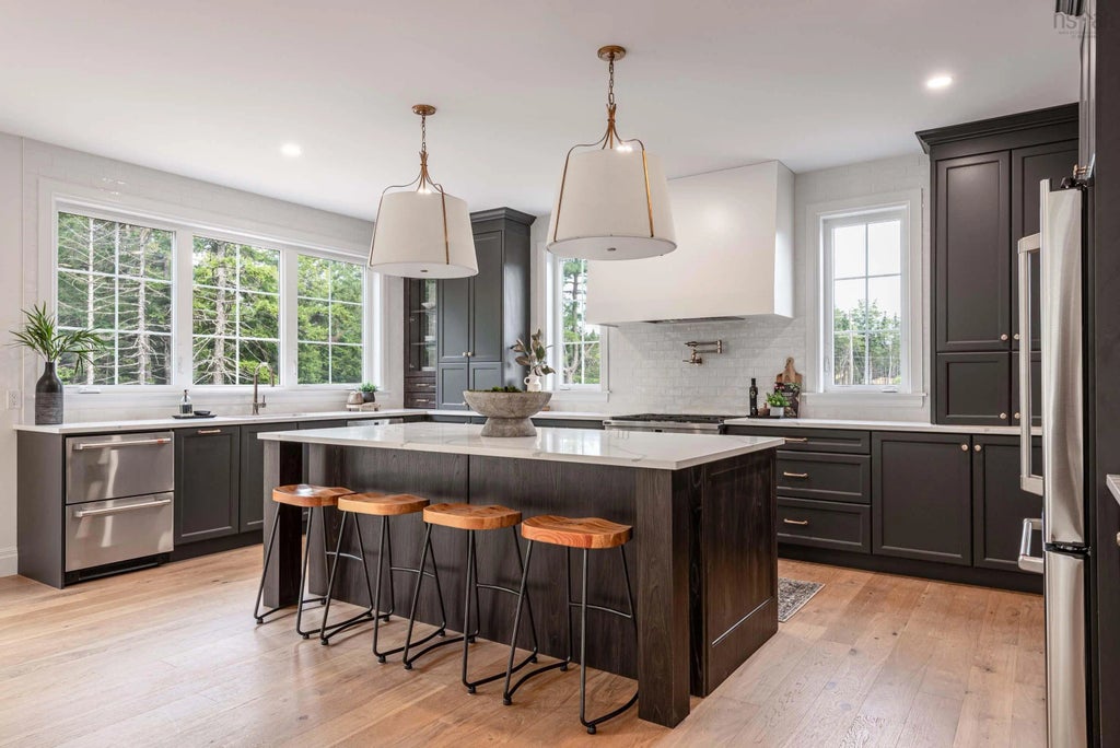 Welcome to 72 Element Court, a stunning new construction home in Brookline Park, West Bedford’s premier community. This exquisite residence blends elegance and luxury, creating a timeless, inviting atmosphere ideal for families and professionals alike. From its stunning curb appeal and professionally landscaped yard to the interior's sophisticated finishes, every detail exudes modern luxury. As you enter, you’re greeted by a grand entrance with soaring 18-foot ceilings and a captivating hardwood staircase. The heart of the home is the expansive open-concept kitchen, living, and dining area. The kitchen stands out with warm, moody tones, a large working island, quartz countertops, high-end appliances, and a well-sized pantry. Large windows drench the space with natural light, and the living area is anchored by a natural gas fireplace, adding warmth and elegance. A spacious office complements the main floor, ideal for remote work, while the powder room and mudroom, with built-in lockers and two closets, provides practical amenities. Upstairs, the indulgent primary suite features a spa-like ensuite with in-floor heating and a custom walk-in closet. This level also includes three additional bedrooms, a large, well-appointed laundry room, and a second luxurious ensuite, offering convenience and comfort for guests or family members. The fully finished walk-out basement provides ample storage and versatile space, including an additional bedroom and bathroom, and a spacious rec room with a wet bar—perfect for entertaining or accommodating guests. Modern upgrades include two fully ducted heat pumps, smart home wiring, and a natural gas backup heat system, to name a few. Enjoy direct access to scenic trails and the greenbelt, ideal for outdoor enthusiasts. Located in a coveted school district with numerous local amenities, the home redefines luxurious living in a connected yet relaxed community. Don’t miss your chance to make this extraordinary home yours!