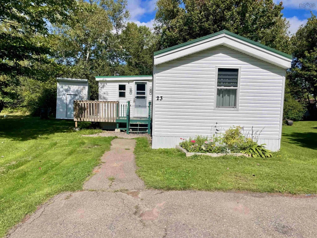 UPDATED MINI-HOME in the heart of Amherst. Welcome to 23 Woodlawn Drive where you will find numerous updates including fresh painting, mini-split, updated bathroom. When you first approach you will see the wrap-around deck from front to back. This deck is gated on both ends with lots of space to roam and set up your peaceful nook in the back. You will also notice the large, modern 8x8 shed with a high ceiling. A perfect place for gardening and yard supplies. This home has 2 beds, 1 bath, a good sized laundry area at one end, then the kitchen, living, and primary bedroom at the other end. A perfect place to call home and a short distance to amenities!
