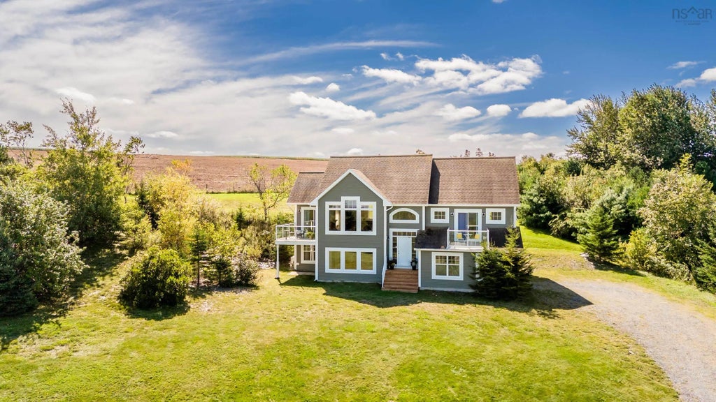 Nestled in the serene Gaspereau Valley, past the vineyards and through the trees, lies a hidden paradise with unrivalled views of Cape Blomidon and the Minas Basin. Welcome to 306 Allison Coldwell Rd, situated on 1.4 acres in a highly sought-after corner of the Annapolis Valley. Built in 2004, this two-level home embraces open-concept living, with breathtaking views from every room. As you enter, you’re greeted by a grand foyer adorned with custom wood railings. Upstairs, the high ceilings and picture windows fill the space with natural light, drawing your eye to the stunning landscape beyond. The chef’s kitchen, featuring a propane cooktop and breakfast bar, is perfect for entertaining and flows seamlessly into the living and dining areas. Cozy up by the propane fireplace during cooler months, or soak up the sunshine with a coffee on the balcony. The spacious primary bedroom offers a peaceful retreat with a walk-in closet and ample room for a reading nook, writing desk, or yoga space. The spa-like ensuite bath includes a double sink vanity and a luxurious soaker tub. Main-level laundry with walkout access to the clothesline makes chores convenient and enjoyable. On the lower level, you'll find a second bedroom, another living room with an office nook, and access to the attached garage. A four-piece bathroom conveniently completes this level. Outside, the landscaped 1.4-acre lot offers privacy with a generous buffer of trees and the perfect elevation for spectacular views. The gently sloping land is ideal for hobby gardening, and with flexible zoning, the possibilities are endless. Just minutes from the vibrant town of Wolfville, local food and wine destinations, and the Valley’s many farm markets, this property offers the perfect blend of tranquility and accessibility. *Please note that the property is NOT accessible via Greenfield Rd due to ongoing construction, but is accessible via Nowlan Mountain Rd, as seen in photos.*