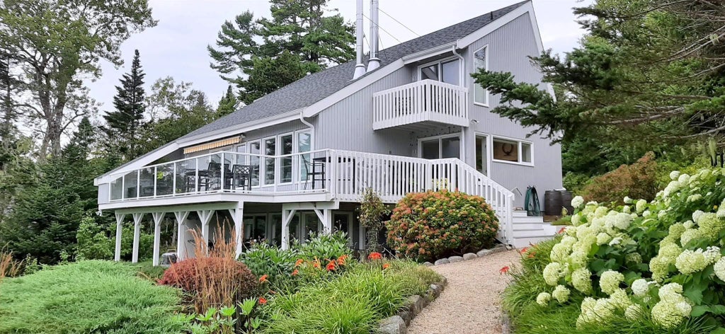 Contemporary oceanfront home, picturesque setting surrounded by mature natural beauty on Marvin’s Island, a sought-after seaside community with forested nature trails connected to mainland by a short causeway in desirable Chester Basin. This sun filled home offers stunning water views from every room. High end, quality finishes evident throughout. A gorgeous Chef’s Kitchen equipped with top-of the line appliances and stone countertops flows seamlessly into open concept Dining/Great Room with fireplace, ideal for entertaining. Completing the picture is sturdy post and beam construction, vaulted ceiling and wall of windows leading to a spacious ocean side deck. There is a main floor Den/Bedroom with ensuite as well as three upper-level bedrooms and bath including Primary Bedroom with private balcony perfect spot to savour morning coffee. Lower-level walkout is a delight with spacious Family Room, Guest Bedroom, full Bath and Workshop. Enjoy seasonal changes through a very private landscaped yard/enchanting Paths and Garden Shed. Beach access for swimming, wharf, boat dock and deep-water anchorage are a bonus, truly an oasis waiting to be discovered! Lunenburg County including this property is exempt from the foreign buyer ban as of this date.