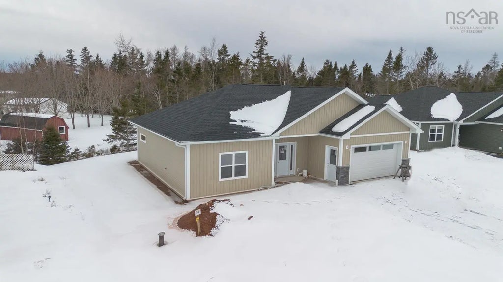 Stunning Brand-New Home on Valley's Newest Cul-De-Sac! This custom floor plan is designed to impress! Enter through a spacious welcoming foyer with a large double coat closet, perfect for greeting guests. The open-concept Living, Kitchen & Dining area boasts luxury vinyl flooring, a heat pump & sleek pot lights, creating the ideal space for entertaining. The Kitchen is a chef's dream featuring a center island with a double sink, stainless steel dishwasher, Corian Glacier White countertops made by Dupont (Photos Available) & plenty of cabinetry. Step through the dining room's patio doors onto the back patio -- ideal for BBQ's & outdoor dining. The primary suite is a retreat, offering a generous walk-in closet & an ensuite bath complete with double vanity sink & ceramic floors. 2 more spacious bedrooms & a 4 pc bath complete this thoughtful layout. Stay cozy year round with in-floor electric heating. The heated garage with a remote door opener adds convenience and an 8-year luxury warranty brings peace of mind. Outside, you'll find a paved driveway, drilled well, municipal sewer & professional landscaping. Situated on a quite cul-de-sac with all power lines underground, this modern street is one of Valley's most sought after addresses. Experience single-level living at its finest, with quality craftsmanship & contemporary finishes throughout.