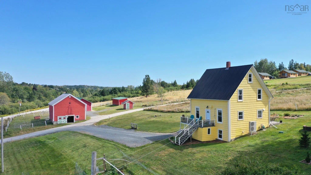 LUNENBURG HOBBY FARM OPPORTUNITY! -- Have you been dreaming of having a few horses?...maybe some goats?...perhaps something more exotic like alpaca? Or is it just some chickens for fresh eggs you seek? What about a bit of cleared land for growing your own food? How about all of the above, and more!! Well, here's a rare find – this is your opportunity to have a tidy Hobby Farm property right at the edge of town! Enjoy the benefits of rural living, without being too far out in the country! The old farmhouse has enjoyed extensive updates & is thoroughly refreshed, meaning you can simply move in and be comfortable. The 1400 sq ft home features a spacious & open living/dining room, a fresh & bright kitchen, main level full bath, and front & back decks to enjoy the country setting & views of the classic red barn at different times of day. Upstairs are 3 bedrooms, including a spacious primary. A multi-zone ductless heat pump w/ 3 heads ensures year-round comfort throughout the house, including the high & dry basement which has been fully insulated. Other recent improvements include electrical upgrades, including new generator panel, updated plumbing, and extensive drainage & landscaping around the house. Four outbuildings include the 6-stall horse barn complete with 1000 sq ft hayloft; a large garage/workshop building that is fully insulated & has its own 100Amp electrical; a large horse shelter in the upper paddock; and a handy little equipment shed. With these versatile buildings the possibilities are endless. The garage would make an ideal shop for any woodworker, or perhaps the perfect spot to tinker on a vintage car. The 1.7 acre property encompasses upper & lower paddocks, fields & gently sloping lawns, a fully fenced veggie garden w/ irrigation system, & ample parking areas for assorted vehicles. All of this is to be had, a mere km from the centre of popular Lunenburg. You even have municipal water! Like we said...'A Rare Find'!