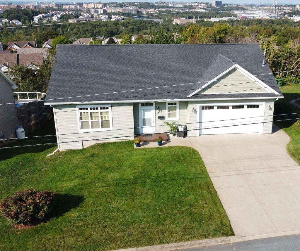 Looking for a move-in ready, energy efficient and modern home? 8 Alpine Drive is it! Located in a family friendly neighbourhood, this surprisingly spacious bungalow was built just 10 years ago and pride of ownership is clearly evident. Fully finished on both levels with care and consideration given to layout, design and function - this home is ready for new owners. Upon entering, the beautiful hardwood floors and large open concept design command attention. The living, dining and kitchen areas are great for everyday family living as well as entertaining. Just off the kitchen, which has loads of cabinets and tons of counter space, the easy flow extends through to a deck which adds some great outdoor living space and has fantastic views overlooking Dartmouth. The main floor also features a large foyer, the well appointed primary suite with an adjoining ensuite and walk-in closet, laundry, a second bedroom, and another full bath. And, that is only the main level! Maybe one-level living in a newer build within an established neighbourhood is all you need. But, if not, there is much more living space! A huge lower level with a walkout provides various options. This bright level with loads of large windows has 3 more good sized bedrooms, a huge family room and another full bathroom. A solid core door separates the upper and lower levels. There is also a rough-in plumbing in the family room making it easy to add a kitchen or wet bar. Additional living space? In-law suite? Income suite? The options are many. This very well maintained carpet free house with lots natural light all day, tons of storage and an attached garage is located on an extremely low traffic road which makes it an absolute must see! Be sure to view the 3D virtual tour and book a viewing.