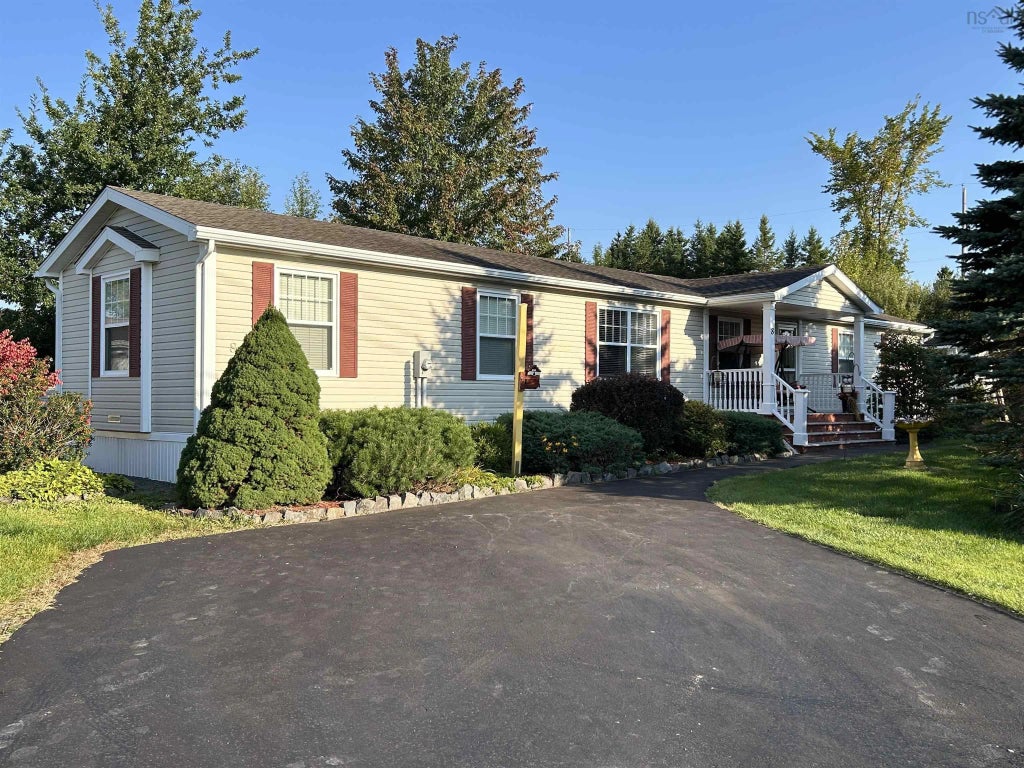 Welcome to 8 Irven Dr, Garlands Crossing, Windsor, Nova Scotia. This immaculate large mini home features 3 bedrooms, 2 bathrooms, with 1184 sq ft of spacious living area. Two large decks (front and back), brand new heat pump - August 2024, Double paved driveway, newly shingled roof -September 2024. This gorgeous home is located on a beautiful rented lot in a retirement community 55 and over, with beautiful landscaping and large shed/outbuilding. The park is meticulously kept and pet friendly. *Please note this is a retirement community. The age to purchase or rent is 55 and over*. Please don’t miss out on this affordable, move-in, ready home! Book your showing today.
