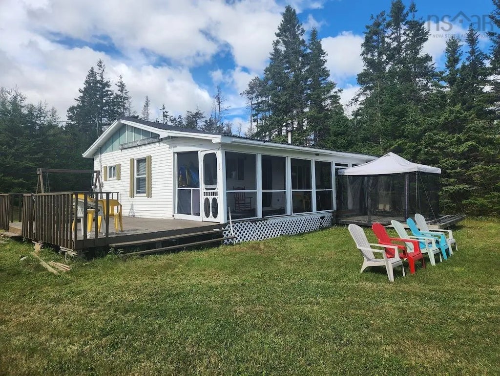 Are you looking for an Affordable Waterfront Seasonal Cottage? This property is Located along MacInnis Lake with 100ft of shoreline. The Water front is great for swimming, small boating and Fishing. Gradually sloping site with 1.5 acres of land. Enjoy the Peaceful country living with only a 25 minute travel to Sydney. The seasonal cottage is 20x30ft with a 8x30ft covered screened deck. The Cottage offers an open concept kitchen and living area with three bedrooms and a 3-Pc bathroom. Electric baseboards and a wood stove for Heating. Treed at the Road for Good Privacy and Cleared from the Cottage to Shoreline offering Great Views of the Lake. Large L-shaped deck offers lots of out-door living space. Call today for additional information.