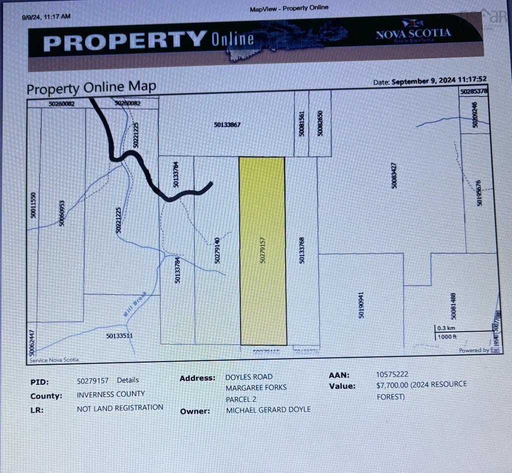 48 Acre forested woodlot adjacent to operating stone quarry at the end of Doyles Road. Newly surveyed.