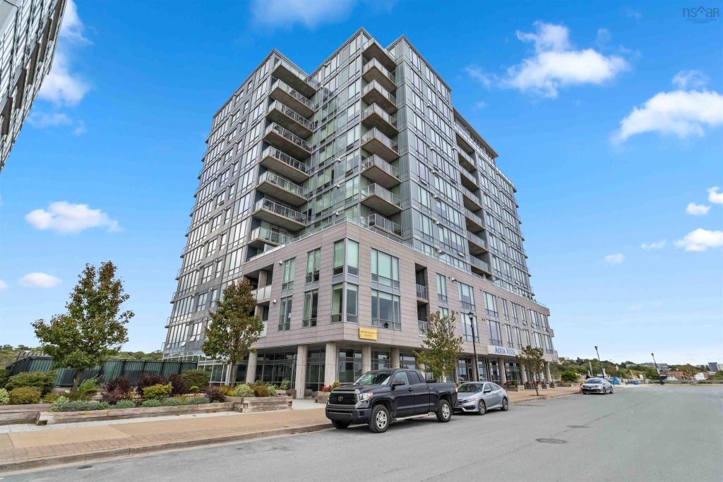 Stunning one bedroom, one and a half bath condo in Kings Wharf's premiere building - the Aqua Vista! Once you enter the condo you will fall in love with the open concept, bright, main floor layout and high-end finishes. The unit features a beautiful black kitchen, granite countertops and stainless appliances plus natural gas stove and large Center island with tons of counterspace! The living room boasts awesome views of Dartmouth Cove and features a natural gas fireplace and custom built-in shelves! This condo is rear facing and is very private, you will love enjoying your morning coffee here! The balcony also has a natural gas hook-up for a BBQ. The spacious master bedroom features a large walk-in closet that conveniently flows into a stunning four-piece bath with a large soaker tub and glass walk in shower. Also, on the same floor as your unit and right down the hall are the well stocked gym and social room, you really feel like they are an extension of your unit! You can throw a party on Friday night and then walk down the hall to work out in the morning! The Aqua Vista also features an in ground pool and hot tub - the only one in the Kings Wharf development with these offerings. The condo fees include heat, cold and hot water, parking, storage, and access to all amenities. This unit is very impressive, come and see for yourself and live the downtown dream today!