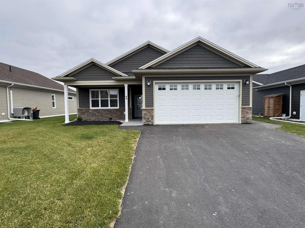 This beautiful home offers an ideal blend of comfort and elegance, perfect for single-level living enthusiasts or retirees. With its thoughtful layout featuring 2 bedrooms, a full main bathroom, and a spacious primary ensuite, the home maximizes convenience and style. The 9-foot ceilings throughout and the sophisticated tray ceilings in both the living room and primary bedroom add an extra touch of grandeur. The kitchen stands out as a central hub with its expansive counter space, large corner pantry, and sit-up island—perfect for casual dining and entertaining. The covered back deck is the highlight, providing an inviting outdoor space to relax and unwind. The primary suite is truly a retreat, complete with a luxurious tray ceiling, a well-appointed ensuite featuring a double vanity with quartz countertops, and a generous walk-in closet for all your storage needs. Set in a serene community, the location is ideal for those seeking a peaceful yet active lifestyle. Nearby amenities include golf courses, wineries, and exquisite dining options, while Halifax is just a short drive away, offering easy access to city life and its vibrant attractions. This home is a rare find for those looking to embrace a relaxed and refined lifestyle.