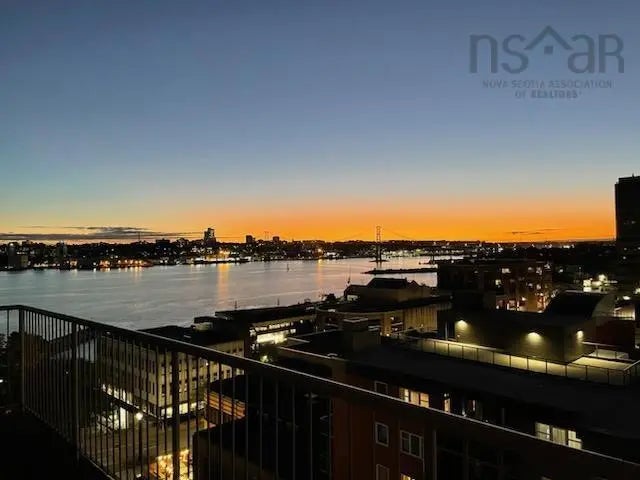Enjoy the high life in the centre of Downtown Dartmouth, above the busyness of the streets, with expansive views and incredible sunsets over the harbour. This bright, well maintained condo features wrap around windows in the living area, providing amazing views of sea, sky and cityscape. The large balcony has nothing above (perfect for star gazing) and is accessed from the living room and primary bedroom, providing excellent air flow and natural light. The good sized kitchen has lots of cabinetry and a large pass through to the dining room. The cozy den/office/guest room includes shelving and there’s a handy half bath and in-unit laundry. The spacious primary suite has a walk-in closet and updated ensuite bath with 4.5' shower surround with seat. This 1 BR + den corner unit is located in popular Admiralty Place - a building complete with updated common areas, a podium garden, indoor pool, hot tub, sauna, fitness room, heated underground parking and storage units, a bicycle room, library, large party room, live-in supers and professional property management - plus a real community feel with frequent social events and gatherings. Live in the heart of it all, surrounded by excellent restaurants, cafes and boutiques, professional services, bus routes, Alderney Landing (with ferry terminal, farmer's market, library, arts centre and excellent seafood), close to the bridge and Zatzman Sportsplex. Enjoy all the green space as well - the building is bordered by parkland on two sides, with Ferry Terminal Park, the Trans-Canada Trail leading to the newly-daylighted Sawmill River, Sullivan’s Pond and Lake Banook, and the Harbourfront Trail running along Dartmouth Cove to Woodside. Don't delay, this is a perfect pied-à-terre at a great price!
