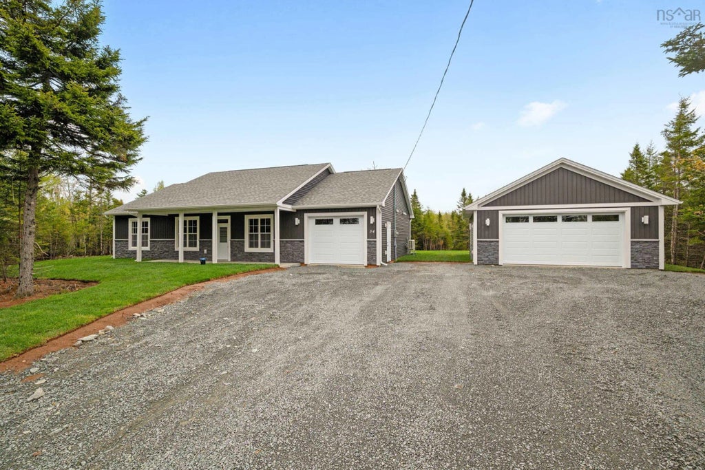 Discover the charm of this ranch-style bungalow, designed by Kahill Custom Homes. Situated on a quiet cul-de-sac with over 2 acres of land, this home features in-floor radiant heating, two ductless heat pumps, and striking 9' ceilings. Enjoy upscale touches like ceiling-height cabinetry with upper and lower lighting, a stunning central island, and durable solid surface countertops. The property includes two concrete patios and generous storage options with both a single attached garage and a double detached garage. Located in the highly desired, urban-rural development of Indigo Shores, this home is conveniently located only 10 min from Hwy 101, allowing a short commute to the beauty and local wineries of the Annapolis Valley as well as only a quick 30-min drive to Halifax Stanfield International Airport. You still have the opportunity to select your own interior finishes!