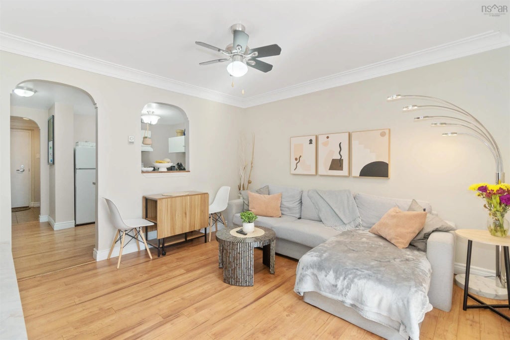 Welcome to Convoy Towers, Unit 204! This 1 bedroom + den condo sits in the quiet part of the building in the back away from the street noise. This unit was completely renovated years ago so there's no popcorn walls/ceilings. When you walk in, there's a foyer area and then past the full, 4 piece bathroom, there's a good sized, semi-open concept kitchen and living room with laminate flooring throughout. On the other side of the living room there's a large den with french doors which is a great bonus in this previous 1 bedroom condo and there's a private balcony off of the living room as well. The primary bedroom is a great size (14.4x9.7) with good sized closets for storage. This unit has some of the cheapest condo fees in the building at $461.21/month, which include: water/hot water, heat, electricity, underground parking, storage locker and building maintenance. The 2024/2025 property taxes are $1,631.34. This building also comes equipped with EV Charging stations out front and there's a huge laundry room just off the recently renovated main lobby. Sitting in the deep North End and directly on a bus route, this is a perfect location for those trying to sneak into the Halifax Peninsula market at an affordable price!