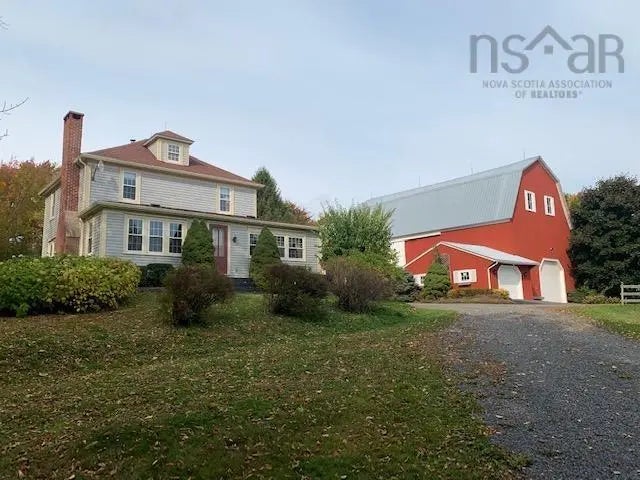 This "one of a kind" country property has it all. Location, privacy, views, amazing barn, superb landscaping and a fabulous home. The property is ideally located just outside the bustling Town of Berwick in the Annapolis Valley. It sits nicely elevated, facing southward with long unobstructed views and surrounded by 10 acres. It's extremely well landscaped and has a park-like setting and lots of paved parking. The barn will appeal to anyone looking for a huge well maintained barn with multiple rooms and three levels. There are 3 large rooms, plus a cold storage room, garage and workshop space. Perfect for so many uses including home based business, wedding venue, winery/distillery or any idea requiring lots of high, dry and very unique spaces. The home was built around 1939 and retains much of its original charm while being extremely well maintained and updated. It features a modern kitchen, 4 bedrooms, 2 full bathrooms, lots of windows, large livingroom, 2 woodstoves, heat pump, modern septic system, an endless supply of water and high-speed internet. This is a must-see property.
