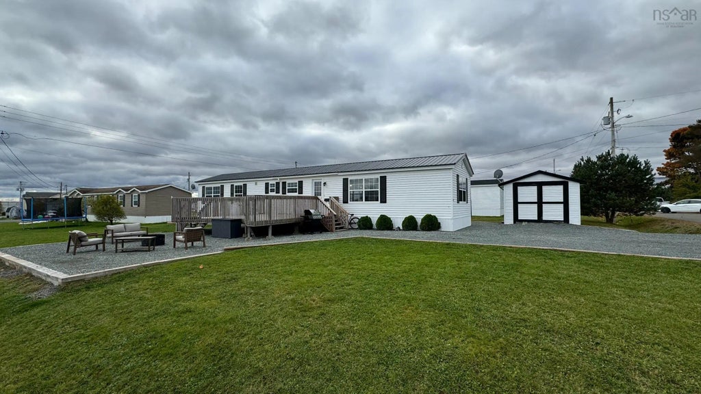 Welcome to this beautifully updated 3 bedroom mini home located in Debert. Situated on its own lot with municipal water & sewer services. The kitchen shines with quartz countertops, undermount sink, built-in dishwasher & stainless steel fridge & stove. Updated laminate flooring flows throughout the living spaces, with vinyl plank in the bathroom. Enjoy the spacious open concept living & dining area, perfect for entertaining. The bathroom features a quartz vanity & the laundry area includes both the washer & dryer, along with a handy quartz folding table. Recent updates include fresh paint & modern hardware on all doors, giving the home a fresh, contemporary feel. Step outside to a large deck, with a gravel pad ready for an above ground pool or to be used as a fire pit space. For your storage or workshop needs, there are 2 sheds on the property—a 10x10 shed & larger 18x12 workshop with double doors. The home has a metal roof. Located close to the Hwy access, Debert Airport & Industrial Park & the golf course is not far as well. Call today!