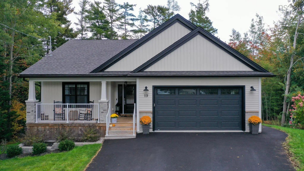 Welcome to 19 Woods Court, a magnificent executive bungalow spanning over 2,800 square feet, located on a serene cul-de-sac in Beaver Bank. This meticulously maintained, 3 year old residence, offers a private oasis on a beautifully landscaped oversized lot, with an in-ground irrigation system. Before entering this completely move-in ready home, you are greeted by a charming covered porch and beautiful glass front door. Upon entering the bright main level you will find an open-concept living space that seamlessly combines the living room, dining room, and kitchen. This area is enhanced by custom blinds on every window, high-end black stainless-steel appliances, quartz countertops, and an undermount farmhouse sink, all set against elegant wide plank flooring throughout. Adjacent to the kitchen is a convenient laundry/mudroom leading to a spacious double-car garage. The main level also features a generously sized primary bedroom with an ensuite and walk-in closet, as well as an additional bedroom and full bathroom. Next descend the gleaming hardwood staircase to the lower level, which is designed to feel bright and inviting, featuring full-size windows, also with custom blinds, and a walk-out to the meticulously landscaped backyard. The continuity of the high-end flooring extends throughout this space, which includes three large bedrooms, a den/exercise room, a family room, a full bathroom, and multiple storage rooms providing ample space for the entire family. A fully ducted heating system keeps you warm in winter and cool in the summer. Noteworthy elements include a dedicated home theatre system in the family room, 2 bathrooms and 1 bedroom have been professionally wall-papered by Halifax Paper Trails, a large private deck that overlooks the spectacular green-space, and a large shed, all of which add to the allure of this stunning property. With everything thoughtfully arranged, this home is ready for you to move in and enjoy. You really need to see it to believe it!