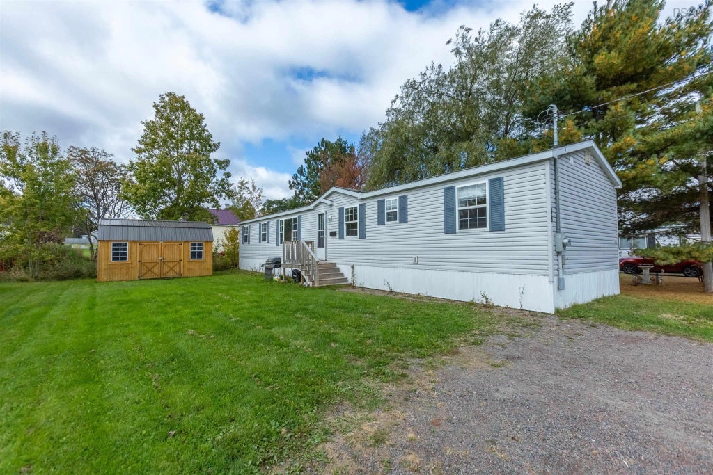 Discover this perfectly sized three-bedroom, 1.5-bathroom mini-home—ideal for first-time buyers! Inside, you'll find a spacious open-concept eat-in kitchen that seamlessly connects to a bright and inviting living room. Two bedrooms and a full four-piece bathroom are conveniently located on one side of the home. On the other side, there’s a laundry room with a secondary entrance, along with a generously sized primary bedroom featuring a cozy two-piece ensuite. This mini-home is situated on a rented lot with a monthly fee of $208.74, making it a fantastic choice for budget-conscious families.