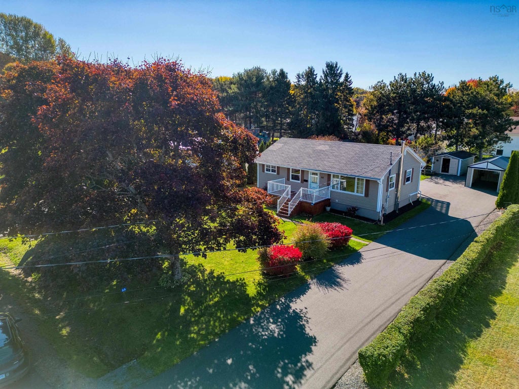 Impeccably maintained & updated 3 bedroom home in desirable New Minas neighbourhood! On the main level, 2 bedrooms, updated bathroom (2019), updated kitchen (2019), living room and dining nook. All new vinyl plank flooring on main level (2019). Lower level, another bedroom, 2 piece bath, spacious family room, laundry/storage room, utility room. Ducted heat pump with oil back up furnace (oil tank 2019). Repainted throughout. Vinyl siding re-done in 2019. Selkirk chimney installed in 2019. Extra insulation added in attic. Incredible deck in the back, overlooking landscaped yard. 2 extra sheds. Detached secured building for parking your car.