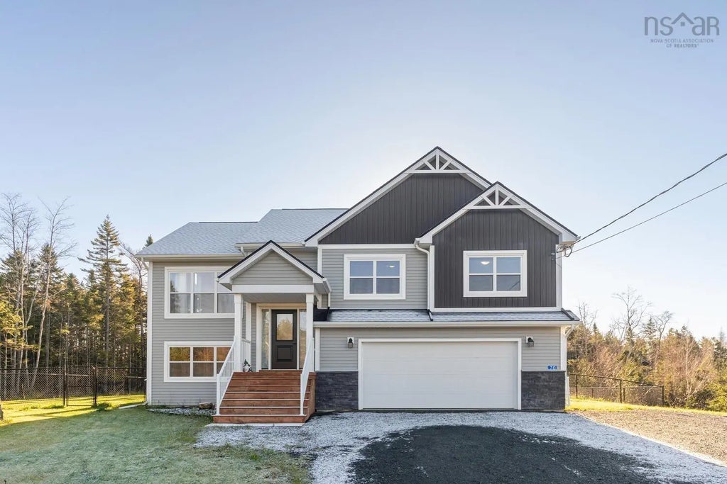 Welcome to your dream home ,go to REALTOR.ca and click on multimedia to see the virtual tour. A stunning Beckett design by Marchand Homes with over 5 acres on a quiet private lane in desirable Indigo Shores at McCabe Lake. This 4-bedroom, 3-bathroom residence combines modern luxury with peaceful seclusion. Nearly new appliances (under six months old) are included, making this home better than new and move-in ready. Enjoy exceptional curb appeal with an expanded driveway and landscaped yard. The fully fenced side and backyard, complete with gates and lush grass, provide a secure space perfect for entertaining or relaxation. The south-facing backyard ensures all-day sunlight. Inside, the open-concept main floor seamlessly connects the modern kitchen, dining, and living areas. The kitchen features a spacious island and quartz countertops. The primary suite includes a walk-in closet and an ensuite with a standalone soaker tub, double sinks and tiled shower. Two more bedrooms and a full bath complete the main floor. The lower level offers a large rec room, mudroom, laundry, full bath, and a fourth bedroom or office. Step out onto the expansive deck for easy indoor-outdoor living. The attached garage with an automatic opener and quick access to the subdivision entrance make commuting a breeze. This home offers the perfect balance of style, comfort, and location—just 25 minutes from downtown Halifax. Quick closing possible.