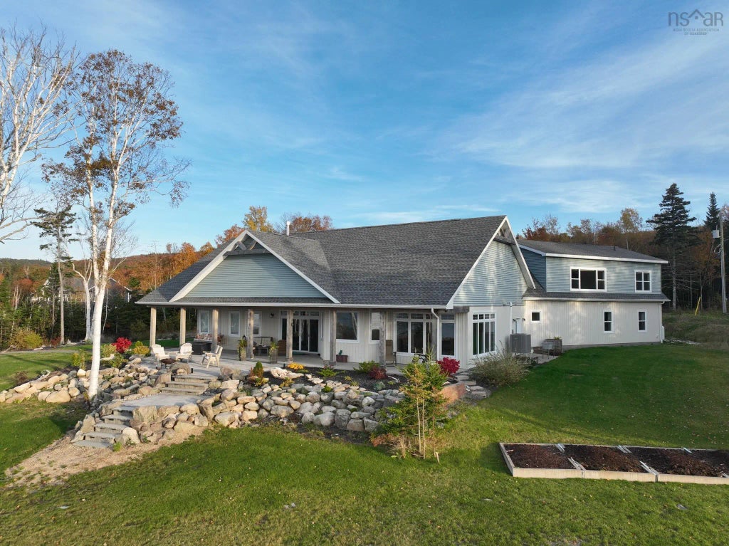 4972 East Bay Highway offers the ultimate waterfront lifestyle on nearly 7 acres along the beautiful Bras d’Or Lake in Ben Eoin, Cape Breton, Nova Scotia. This recently constructed, single-level home spans 3,150 square feet and is crafted with insulated concrete form (ICF) construction, offering both durability and energy efficiency. The property is nestled between premier recreational spots, including private pathway to Ben Eoin Marina, a minutes walk to Ski Ben Eoin and The Lakes Golf Club featuring spectacular dining as well. The home features 210 feet of private lakefront, providing direct access to clear waters and scenic views. Inside, the main living area opens to a cozy entryway and a spacious living room, centered around a Valor propane fireplace with an antique mantle. The well-appointed kitchen boasts quartz countertops, peninsula seating, a large built-in pantry, and a welcoming built-in dining area. With two sizable bedrooms, each with an ensuite, comfort and privacy are prioritized. A sun-drenched family room, wrapped in floor-to-ceiling windows, offers an ideal space to relax or entertain, complemented by antique brick and cedar accents. This room, versatile for activities like yoga or reading, opens to stunning lake views. For additional flexibility, a 1-bed/1-bath suite sits above the expansive three-car garage perfect as a guest apartment, in-law suite, or family room. Outdoors, enjoy a spacious covered porch complete with a cedar swing, or relax on the custom stone patio. With 350 feet of highway frontage, mature trees, multiple driveways, and proximity to local amenities, this property balances privacy and development potential. The panoramic views, modern comforts, and prime location make this home a rare find on the Bras d’Or Lake!