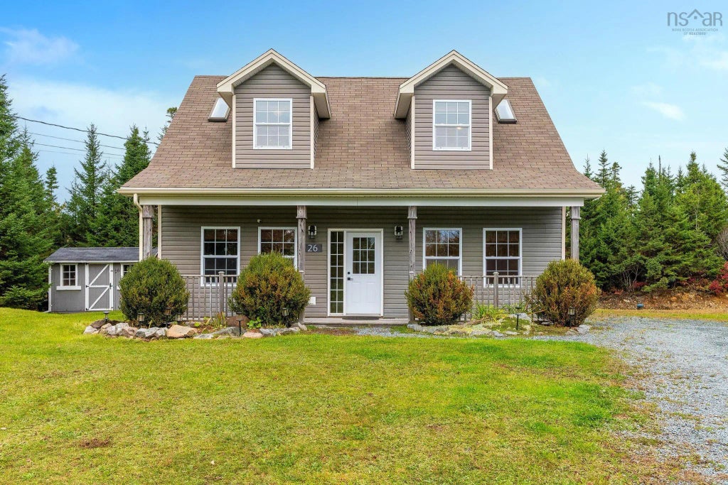 Welcome to 26 Birdsview Lane! Nestled on a tranquil private road, this charming 3-bedroom, 2-bathroom Cape Cod home is set on a generous 1.35 acres. With its classic dormer windows and inviting porch, it exudes warmth and character. Step inside to discover a thoughtfully designed main level featuring two bedrooms, a full bathroom, and a convenient laundry/mud room. The heart of the home is the inviting family room with a wood stove, perfect for winter relaxation. Ascend the staircase to find a bright, open-concept living space that seamlessly blends the living room, kitchen and dining area-ideal for entertaining family and friends. Just off the kitchen, a spacious deck awaits, perfect for summer BBQs and enjoying the serene surroundings . This level also hosts the primary bedroom and a second full bathroom, all tied together with the luxury of heated floors, ensuring comfort year-round. The property boasts a large double detached garage with in-floor heating, providing ample space for parking and storage, regardless of the season. Additionally, the home features solar panels, enhancing energy efficiency and promoting sustainability while saving on utility costs. Within minutes to all local amenities and recreational opportunities, and just 20 minutes to Dartmouth, this home perfectly balances privacy and convenience. Come experience the charm and comfort of 26 Birdsview Lane- your ideal retreat awaits!