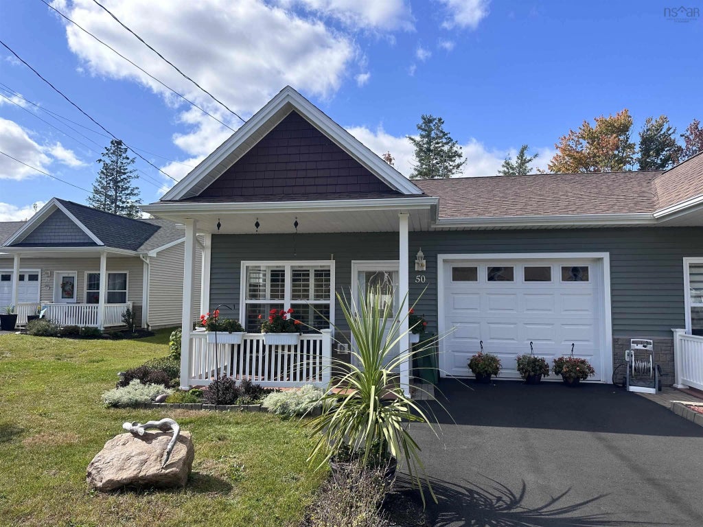 Welcome to this thoughtfully designed, one-level home ideal for accessability and comfortable living. This beautiful, 4 years young bright, clean 1050 Sqft end unit home located in quiet 55+ Riverwood Subdivision in the ever growing Bible Hill, Truro Community is ready for you to call home. This home features two bedrooms and two bathrooms (3pc ensuite off of Primary) in floor heating plus ductless heat pump for extra heating in the winter and cooling in the summer. The open concept layout flows from the living room to the kitchen and dining area which creates an inviting space for relaxing and entertaining. You will appreciate the beautiful granite counter tops, ample cupboard space, appliances, cathedral ceilings, wide hallways, toilet bars and easily accessible laundry area. The attached single heated garage plus a 10 x 14 shed for more storage. The second bedroom has a door that leads you to your 10 x 26 composite back deck. You are within walking distance to the newly opened access point of the Cobequid hiking trail and within walking distance to amenities such as shopping and recreation center. You are less than a 5 minute drive to beautiful Victoria Park and 18km to Masstown! Book your viewing today!