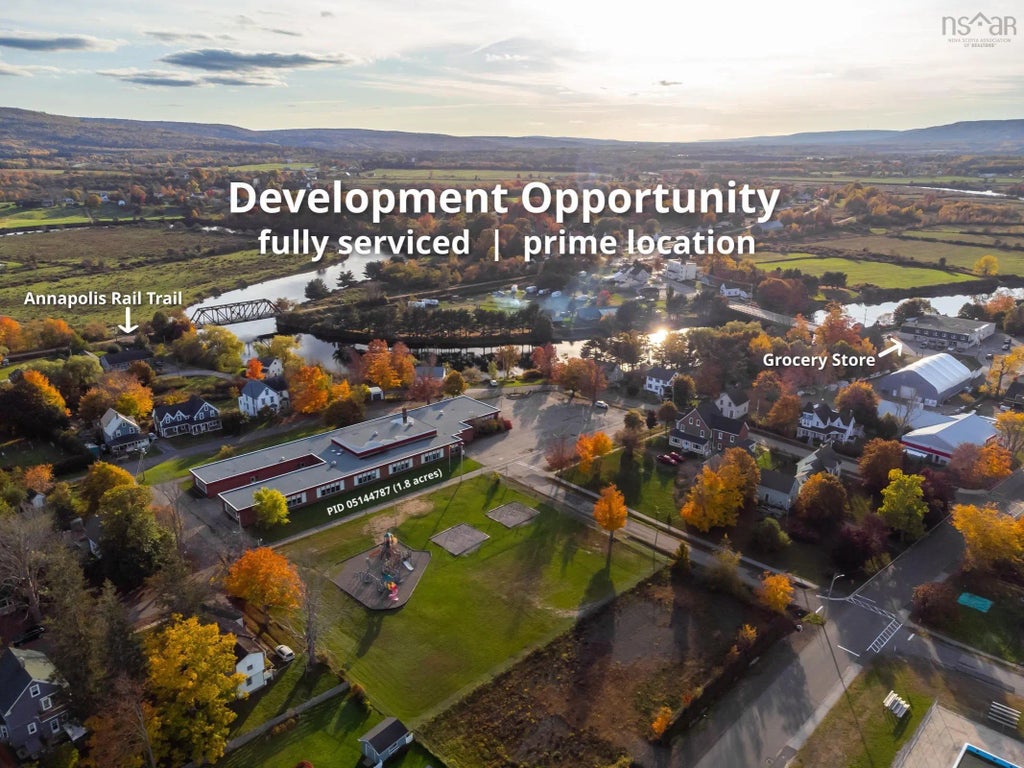 ATTENTION DEVELOPERS! Excellent opportunity to develop a multi-residential complex in a prime location where additional housing is in high demand. Architectural/construction drawings in place (included with sale) to accommodate up to 72 units on this 1.81 acre multi-residential zoned property with ample parking spaces. Current plans take into account new requirements for barrier-free access. Fully serviced with municipal sewer, water and high-speed fibre-op internet available. Existing building is in excellent condition; structurally sound, clean and with a serviceable roof. Ideally situated in the center of town within walking distance to all amenities in Bridgetown, including eateries, grocery store, library, arena, pool, new sports hub & school, public Annapolis River access at nearby Jubilee Park, and the Annapolis Rail Trail. Note: photo renderings of the one-storey building is a repurposing of existing structure and renderings of the 3-storey buildings are concepts for new builds on the property and potentially adjacent lots.