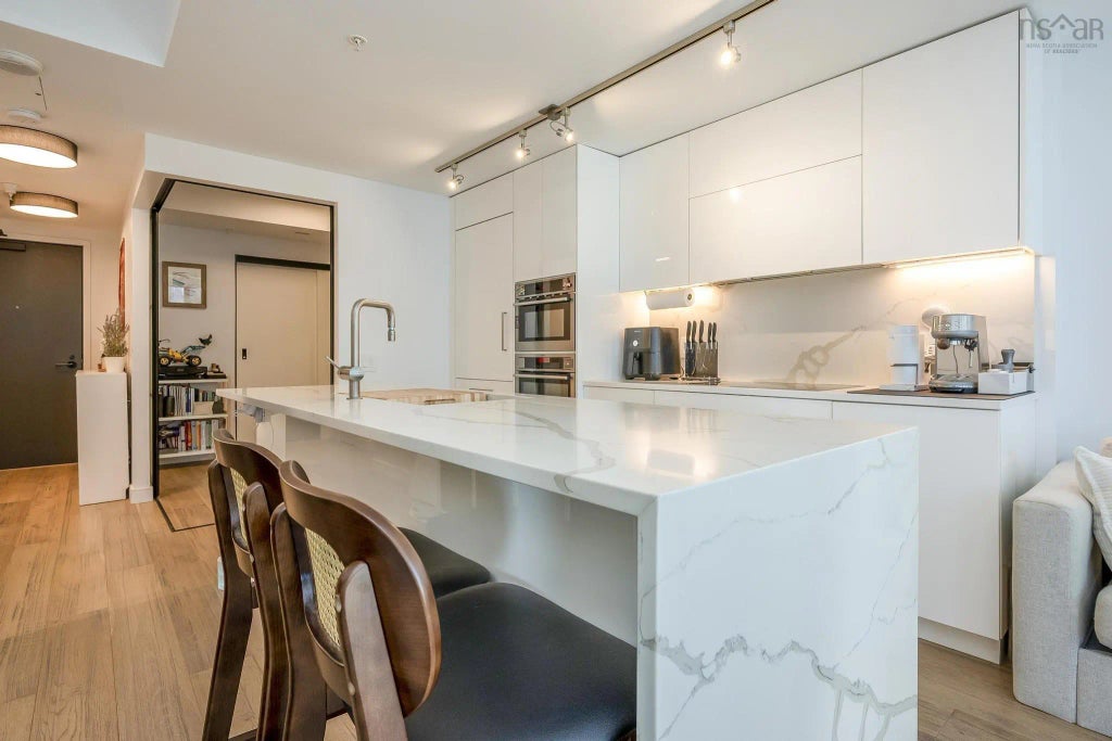 Welcome to unit 1008 at The Roy, a premier residence in the heart of downtown Halifax. This owner-occupied condo has been genuinely cared for, providing the warmth and comfort that make it truly feel like home. With expansive floor-to-ceiling windows, step out to the 135 sf spacious balcony and enjoy a seamless blend of indoor and outdoor living. Inside, the open layout features smooth 9' ceilings, engineered hardwood floors, a waterfall natural stone island, and high-end European appliances that bring luxury and functionality together effortlessly. The Roy offers an impressive array of amenities designed to elevate your lifestyle. Enjoy a swim in the indoor pool, break a sweat in the fully-equipped gym or the yoga/dance studio, relax in the wet and dry saunas, and freshen up in the change rooms. Host gatherings in the party room with a chef's kitchen, take advantage of the private conference room for work, or get cozy with a good book in the library. A 24/7 concierge service ensures convenience and peace of mind. With one of the best walk scores in Halifax, this home places you steps away from public transportation, including the ferry terminal and bus terminal, both just a short walk away, offering a seamless and traffic-free commute across the harbour to Dartmouth or anywhere within the city. Enjoy cozy cafes, vibrant restaurants, cultural hotspots, and scenic strolls along the Harbourwalk or Citadel Hill. Avoid the hassle of downtown parking during festivals and activities—simply take a short walk to immerse yourself in everything the city has to offer. This is more than just a condo; it’s a chance to embrace Halifax’s finest urban lifestyle.