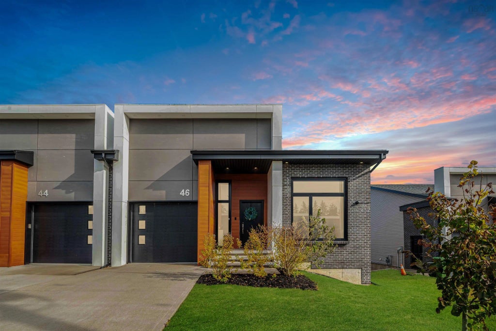 Introducing 46 Helen Creighton Court, a rare bungalow townhome END UNIT/ Walk-out lot in The Parks of West Bedford. Bungalow style living in The Parks of West Bedford - much sought after, but rarely delivered. Enjoy main-level living with high ceilings a natural gas stone fireplace, and luxurious finishes. Located in Brookline Park within the sought-after New West Bedford school district, this 3-year-old home offers: Stainless steel appliances - including gas range, quartz countertops, soft-close cabinets, and a large walk-in pantry in the kitchen. Sunlit living room leading to a spacious deck with upgraded composite decking and glass panels - perfect for outdoor dining. The primary bedroom has a spa-inspired ensuite, walk-in closet, and walk-out deck access with blackout blinds. Convenient main-level laundry, additional full bathroom, and versatile 2nd main floor bedroom/home office. Enjoy the convenient attached garage with automatic opener, and mudroom entry. In the lower level, you will find soaring ceilings, and natural light from this walk-out lot. The rec room space is simply amazing: perfect for entertaining, a golf simulator, or a home theatre. Outdoor upgrades include a poured concrete pad in the backyard, privacy fence and a sprinkler system keeping your landscaping easy - watering the lawn for you! Additional features: Flex room for customization (home gym), cozy 3rd and 4th bedroom for quiet retreat or an extra bedroom for guests or additional living space. Fully ducted heat pump system for year-round comfort (heating and cooling) and energy efficiency. Natural gas backup for reliable heating. This home combines comfort and sophistication for your ideal living environment.