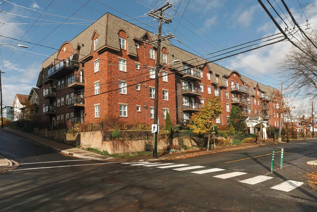 Want to live within walking distance to the HFX-Dartmouth Ferry, cool restaurants and cafes, spectacular Lakes/Parks & Walking Trails plus an awesome farmers market and local library and all the greatness that Downtown Dartmouth has to offer? Perhaps you should read on to learn more about this newly listed Condo and the wonderful Victorian Estates on Ochterloney. This 2 bedroom, 2 full bath condo is spacious as all get out! Walking in you immediately can feel the open vibes - no tight spaces here. A semi-open concept style you've got a well appointed galley style U kitchen that opens into a separate dining area. From there it opens again directly to the large living room. Large windows with California louvered shutters (throughout the condo!), corner built in electric fireplace w/ mantel and a walkout to a good sized balcony with great exposure - and BBQ friendly! Down the hall you'll find the main 4 piece bath with separate laundry & broom closet. Further down the hall the first bedroom has a double closet and fits the bill for guests, an office or an art studio as it currently is! The oversize primary bedroom is airy and so spacious, even room for a workout area should you choose plus a walk through large closet to the 3 piece ensuite with stand up shower. Ceiling fans in the living room and bedrooms give great air circulation. This is one level living at it's finest. And you can put your own stamp on it should you like to grow your investment over time. Did we mention this building is PET friendly! 1 indoor parking space with added storage. An excellent on-site Super and well run. condo board. Fees include Heat, Hot Water, Water, Parking, Storage, Building Maintenance, Landscaping/Snow Removal. Although Sellers are currently living here they can move quickly so you could be home for the Holidays! Looking for more info? Call your fave Agent and let's get you in to view!