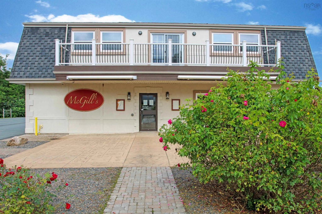 Attention all investors: here lies the exceptional opportunity you've been searching for! Formerly known as McGill's Restaurant, this expansive space exceeds 5,000 square feet, allowing for versatile usage according to your vision. Upon entering the main dining area, you are greeted by a generous 900 square feet of dining space, accommodating up to 40 guests, complemented by a substantial service area featuring a coffee station, a 12-foot encased display showcase, and two public restrooms. Adjacent to the main dining room is an elegant fine dining area, spanning over 800 square feet and seating an average of 45 patrons. This sophisticated space is designed for an executive experience, highlighted by a stunning propane fireplace as the focal point, custom lighting, an integrated audio system, and a beautifully crafted, temperature-controlled wine cellar, fully enclosed in glass for guests to admire. On the upper level, you will discover a 900 square foot special events room/bar, equipped with entertainment amenities, a 150 square foot service area, and a fully operational 22-foot bar. This space also features two additional restrooms and double doors that open onto a 200 square foot deck, providing a picturesque view of the front property. The kitchen is well-appointed with a 7x9 walk-in refrigerator and a 7x5 walk-in freezer. At the rear of the building, there is a convenient storage room along with a substantial ground-level loading area, offering over 1,200 square feet of space and a 10x12 bay door. Located just minutes from major highways and strategically positioned in New Minas, the shopping center of the Annapolis Valley, this remarkable property is ideal for your business or restaurant, with the option to acquire all equipment for a seamless, turn-key operation. Prominent, high exposure, road sign is accessible for new owner.