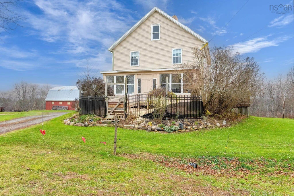 Home, home on the range! Set back from the main road for added privacy, you will find this fully updated farmhouse offering the space and lifestyle you've been dreaming about! From the moment you pull into the tree lined driveway, you will start to feel at home. Offering 8.75 acres of level and fertile land, this property would be well suited for horses or hobby farming with direct access to an extensive multi use trail network. Enter into the home through the convenient side porch or front 3 season sunroom, and take in the warm and cozy interior that is ready to move in and enjoy! The open concept main floor is flooded with natural light and offers a large country kitchen and an attractive wood cookstove. The office space could be used as a fourth bedroom if needed, and two spacious and renovated 4pc bathrooms on each level is another practical feature. The light and airy primary bedroom has plenty of closet space, as do the other two bedrooms, a rare find in an older home! Tons of potential for additional square footage or a secondary suite in the wired walk-up attic. From the electrical, to the plumbing, to heating, the current owners have made substantial improvements to the homes systems providing years of low-maintenance/ low-cost living for the future buyers (comfortably heated for under $1300 per year on average). Heading back outside, two large outbuildings and an attached insulated workshop gives you plenty of room ffor a home business, farming, or hobbies and storage galore! Keep your vehicles under cover with both a garage and carport, and the former 24x44 dairy barn has a full loft above, as does the garage. Overall, this package is the perfect mix of rural country living in the beautiful Annapolis Valley, while still being close to everyday amenities and services. Take a peek for yourself, this could be the one you've been waiting for!