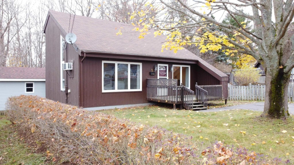 Welcome to 5 Colonial Crescent in New Minas. This 3 bedroom 1.5 story is located in the heart of New Minas, close to schools shopping and all amenities. On the main level is large living room, dinning room, kitchen and bedroom. The lower level has a rec room, half bath, utility room with walk out. R2 zoning allows for the ability to have a lower level apartment. Vaulted wooden beamed ceilings give the home a rustic country charm and spacious airy feeling that maximizes natural light. Home also features a double paved driveway and a large 14 x 19 shed - workshop in the back yard.