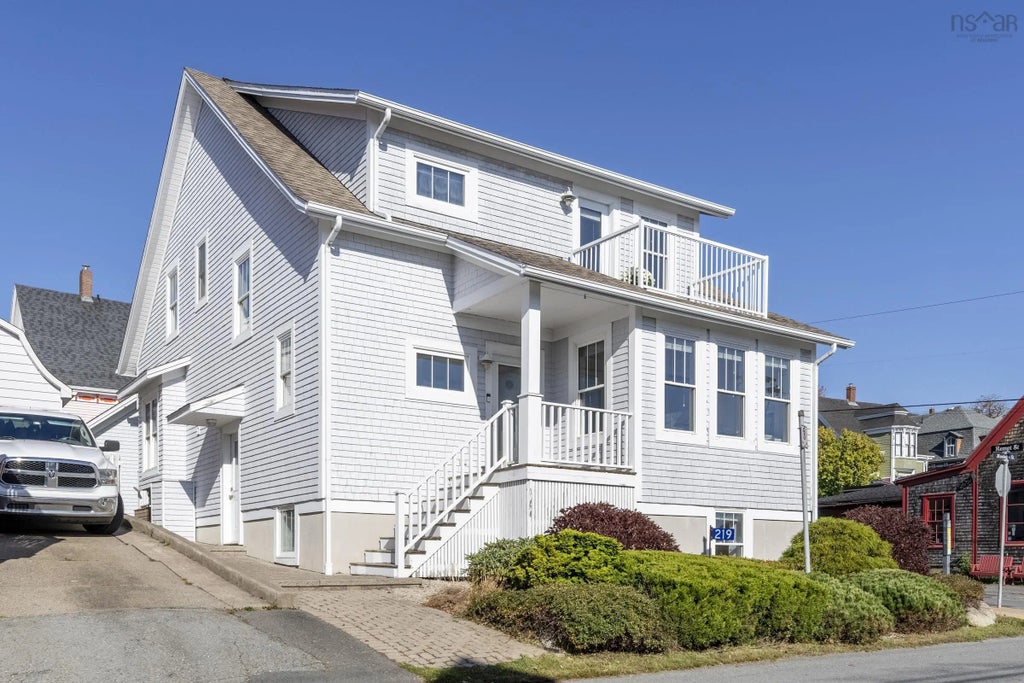 OLD-TOWN ANOMALY -- Here's something that you don't find in Old-Town Lunenburg every day! On the outside, this handsome waterfront district residence appears to be a century or more old with its shingle siding & craftsmen architectural detailing. However, this 3000+ sq ft home is just 22 years young and a departure from the typical Old-Town offering featuring a bright & fresh interior, modern systems, & a fully finished basement. The 4 bed/3.5 bath home enjoys a sunny corner lot on a colourful downtown streetscape. The main floor living space has a casual elegance w/ warm neutral wall colours & white trim anchored by natural hardwood flooring throughout. A large living room w/ propane stove adjoins a lovely sunroom at the front of the house...relax and take in the view of Lunenburg's iconic waterfront. A spacious eat-in kitchen adjoins a large formal dining room & a convenient main floor powder room is off the front foyer. Upstairs, the bright & spacious primary bedroom w/ double closets & 4-pc ensuite enjoys a private balcony overlooking the harbour & pretty streetscape. Down the hall are 2 more bedrooms, a large walk-in closet/dressing room & 4-pc family bathroom. But we're not done yet! No 'old house basement' here!...instead, find a completely finished lower level guest suite complete w/ kitchen area & full bath. With its own entry these lower quarters are ideal for extended stays by visiting family or guests, or income potential from either long or short-term rentals. This unique property also includes a single car garage & an interlocking brick parking area where your car will spend most of its time as it won't be needed. In this marvellous location, everything you need is within a few blocks of your doorstep...groceries, post office, banks, and a host of interesting shops, restaurants & cafes. If you've been looking to make the move to Lunenburg, this special property represents an opportunity you won't see again soon in Old-Town, so don't miss out!
