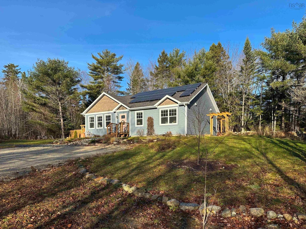 Discover modern living at 20 Creekside Way, Mill Cove. Less than 5 years old, this stunning 3-bedroom, 2-bathroom home offers 1,288 sq. ft. of contemporary design and comfort. The open-concept kitchen and living area feature an island with bar top, perfect for entertaining. The primary bedroom boasts a walk-in closet and ensuite. Energy-efficient solar panels, a generator panel, and a ductless mini-split heat pump provide modern convenience. Outside, enjoy a spacious rear patio with a 48’ pergola, rock walls, flower gardens, and a fire pit with seating, all connected by flagstone paths. The property includes over 200 feet of frontage along a babbling brook, adding to its natural charm. A beautiful shed adds extra appeal. Located close to Hubbards shopping, Aspotogan Golf Club, and just 30 minutes to Bayers Lake via a divided highway. Families will love being within a 5-minute walk of the elementary school, in the Shatford Trust Fund Area, and surrounded by beaches and serene landscapes. A perfect blend of modern living and natural beauty!