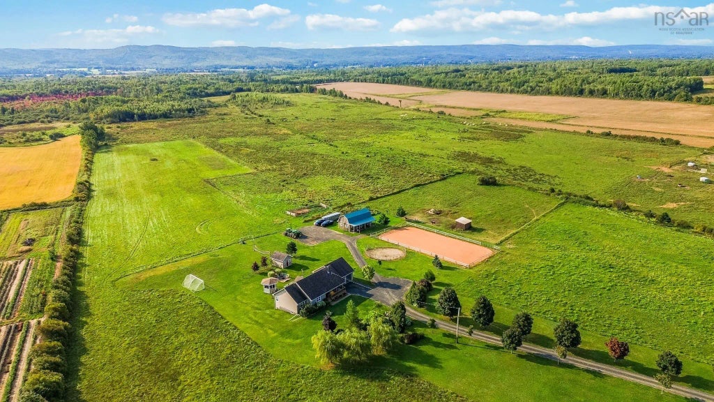 Attention Horse and Animal Lovers! Discover breathtaking views from this stunning 10 +/- acre property in the heart of the Annapolis Valley. This beautifully custom-built bungalow features 4 bedrooms and 3 baths, with a finished basement, offering ample space for a growing family, all just minutes away from amenities and highway access. The main floor showcases an open concept design with a vaulted ceiling in the dining and living area, perfect for family gatherings, and an updated Decoste kitchen with a spacious eat-up center island. Cozy evenings await around the Pacific Energy woodstove. The luxurious primary suite includes an ensuite bath with a soaking tub and a generous walk-in closet, while two additional bedrooms and a full 4-piece bath complete this level. The lower level boasts a family room, office space, a spacious laundry room, and a 4th bedroom with its own ensuite and walk-in closet. Enjoy abundant natural light throughout the home, ample storage space, and stunning views from the front covered verandah or large rear deck and gazebo. Additional features include in-floor heating, high-quality finishes that enhance the home’s character, and a horse-ready setup with fenced paddocks, pasture, hay fields, and a 9,200 sq. ft. riding arena, drain-tiled to prevent water collection. A well-built 20 x 40 horse barn equipped with water and power, a 16 x 20 shed, and an attached wired and heated double-car garage complete this exceptional offering. Set well back from the road, the property exudes a serene country feel and is beautifully landscaped. Additional land available if desired.