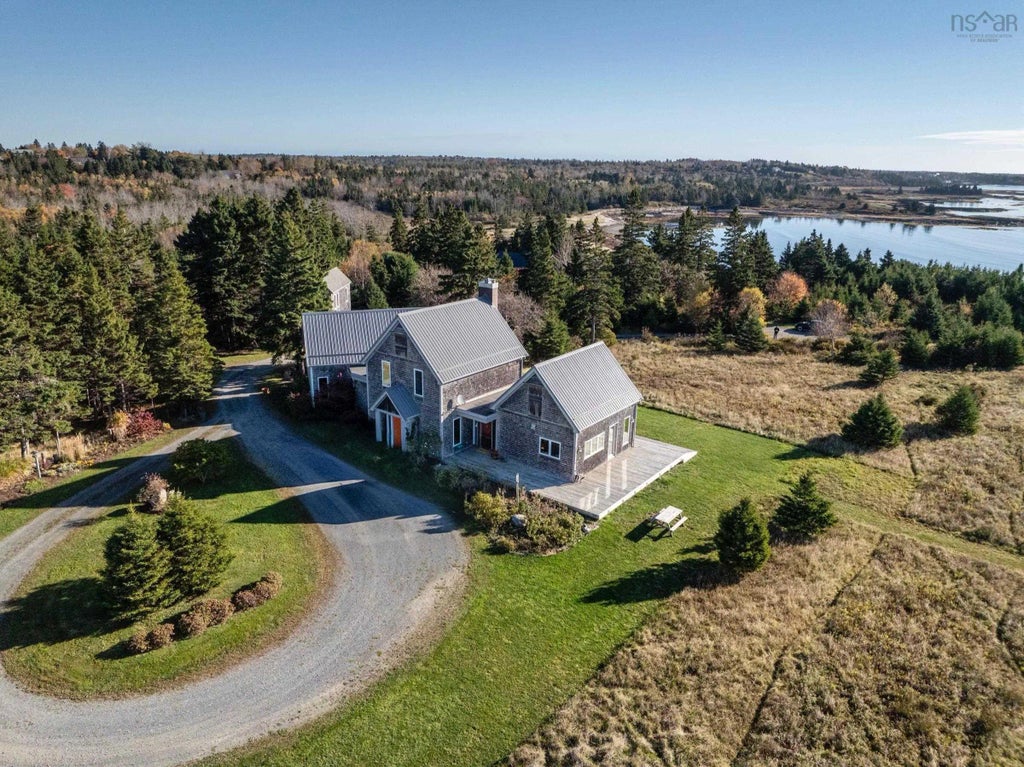 Designed by Nova Scotia architects, this spectacular 4 Bedroom, 2.5 bathroom is the quintessential seaside home. It is ideally situated on 4+ acres where the ocean meets the land with views overlooking the wide open Atlantic Ocean and the entrance to the spectacular UNESCO Town of Lunenburg. This bold and beautiful waterfront location is paired with an immaculate custom-built home and the property you have been waiting for. Once featured in Saltscapes Magazine this thoughtfully designed and expertly sited home offers spectacular views from every room, with an intuitive and inviting layout. 24 Shoreline Drive is perched high on a bluff with a commanding vista where your mornings can effortlessly turn into afternoons watching the ever-changing seascape where you will never tire of the sun setting onto the water, fishing and sailing vessels coming and going and not to forget, the famous Bluenose II sailing by. This home was built by a local craftsman and built with quality materials and attention to detail are evident throughout. Inside it is ultra modern with concrete polished floors, open Rumford fireplace, high ceilings, clean lines, simplicity, rich colours yet designed to look like the waterfront sheds that dot the shores around Lunenburg on the exterior. There is an abundance of large casement windows drawing your eye outside, inviting a sense of calm and ease and bathing each room in natural light. The house has been carefully planned to offer plenty of room for friends and family while feeling intimate, cozy, and just the right size when the guests have departed. Other features include a chef’s kitchen, a cozy living area and covered wood shed and outside sauna just a step away. Outside, there is a single car garage with guest quarters above, a shared and protected 13 acre buffer lot ensuring peace, tranquility and total privacy, your own beach and a boat house complete this unique and special property. Floor plans, feature sheet and drone video are available.