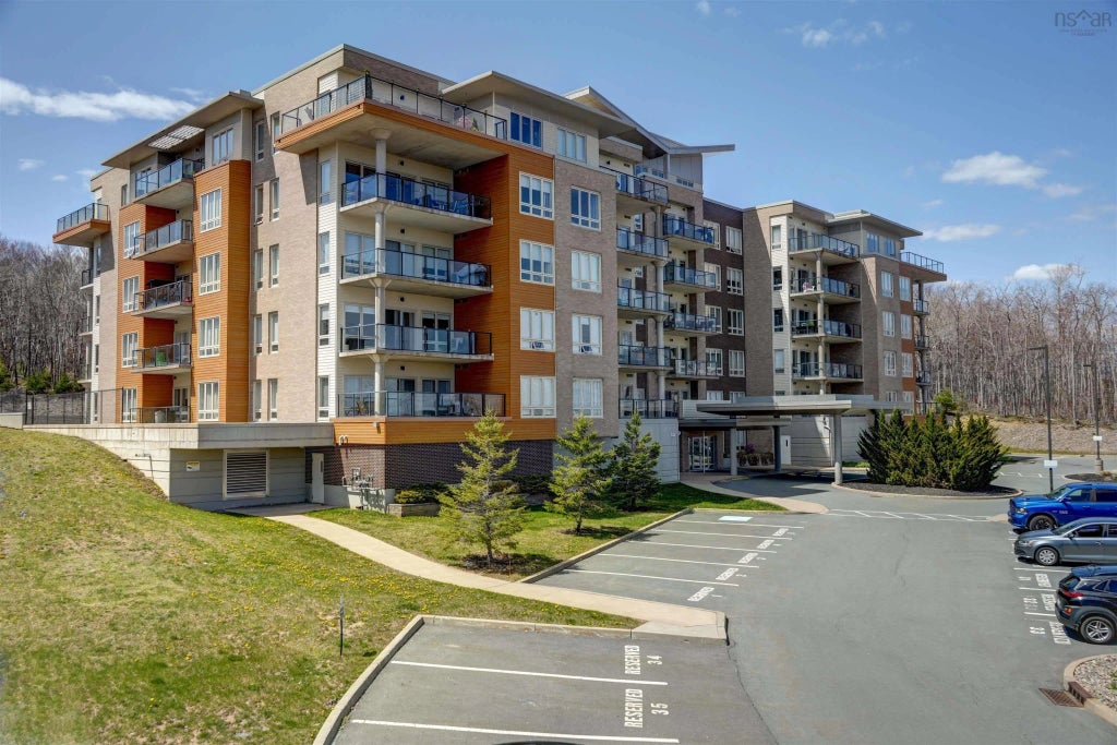 Welcome to Domvista, where style meets convenience in the sought-after Parks of West Bedford! This spacious 1,449 sq. ft. condo has everything you’re looking for. The open-concept kitchen features a large island, perfect for entertaining, and flows seamlessly into the dining area and living room, with a walk out to a generous 9x21 covered balcony. The layout includes a large primary suite with a walk-in closet and private 3-piece ensuite, a second bedroom, a versatile den (easily a 3rd bedroom!), a 4-piece main bath, and a dedicated laundry room. This private 3rd-floor, corner unit is tucked at the rear of the building, offering serene views of the greenbelt and walking trails. Condo fees cover heat, hot water, exterior maintenance, access to the gym, an assigned underground parking space, and a storage unit. BONUS: this unit also includes an additional deeded outdoor parking spot. Perfect for a second vehicle! With amenities just a stroll away and quick access to Highway 102, this location is hard to beat. Book your viewing today and see what makes Domvista so special!