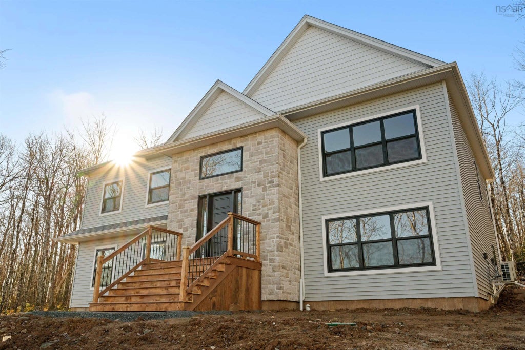 Ramar Homes brings you “Wisteria”. Nestled in the new development, an extension of Everwood Avenue, this property offers over two acres of seclusion on a private lot with mature hardwood trees. The wisteria features a modern open concept main floor with a 9 foot ceiling, a spacious kitchen with large island, and a walk-in pantry. The custom crafted electric fireplace, teamed with large windows, surrounded by nature brings unmatched comfort. The layout is designed for living at ease with a large primary suite with walk-in closet and 4 piece spa-inspired ensuite, two good size bedrooms all on the main level. The lower level provides a 4-pc bath, 4th bedroom, and spacious rec room. You will love the mudroom off the side accessed off the attached double car garage, which allows plenty of room for parking and storage. This comes with a handful of elegant finishes, such as black windows and doors, stone facade, a custom ensuite tiled shower with glass sliding door, vinyl plank flooring, among others. Rest easy knowing that this property comes with a Platinum Atlantic New Home Warranty and a 1-year builder's warranty, providing peace of mind for your investment. Convenience is key, with just a 7-minute drive to Upper Tantallon and a 30-minute highway commute to Halifax. For nature enthusiasts, the location is a two-minute walk from Camp Hill Lake and Long Lake Nature Reserve, providing easy access to walking trails leading to lakes and opportunities to immerse yourself in wildlife. This home is perfect for nature lovers, offering a peaceful retreat or a luxurious family home. Don't miss out on this versatile opportunity to make this stunning property your own!