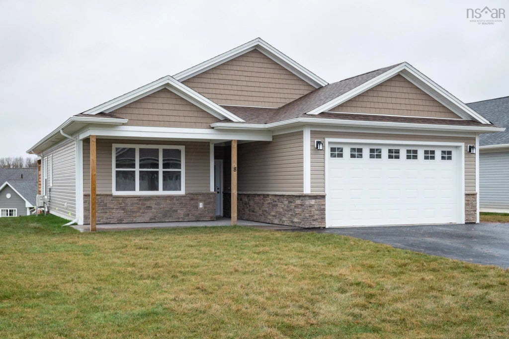 Don't miss this fantastic opportunity to own a beautiful detached home in the desirable Falmouth Nova Scotia! This stunning 2 bed, 2 bath property is perfect for those looking for single-level living. Enter the residence and be amazed by the spaciousness and elegance of this new construction home, beautifully designed to offer comfort and convenient living. 9 foot ceilings throughout with open-concept layout is perfect for entertaining friends and family. The primary bedroom boasts a true retreat, featuring a grand tray ceiling, an ensuite with a double vanity and quartz countertop and a walk-in closet, providing ample storage space. Located in a peaceful mature community, this home is conveniently close to all the amenities that a retiree could desire. Epoxy garage floors, landscaped and a paved driveway included, plus underground irrigation and an 8 year Lux home Warranty. All within a short commute to Halifax ensuring that you're never far from the excitement of the city. Enjoy leisurely rounds of golf, visit nearby wineries, and indulge in the Annapolis Valley lifestyle. Don't wait - seize the opportunity!