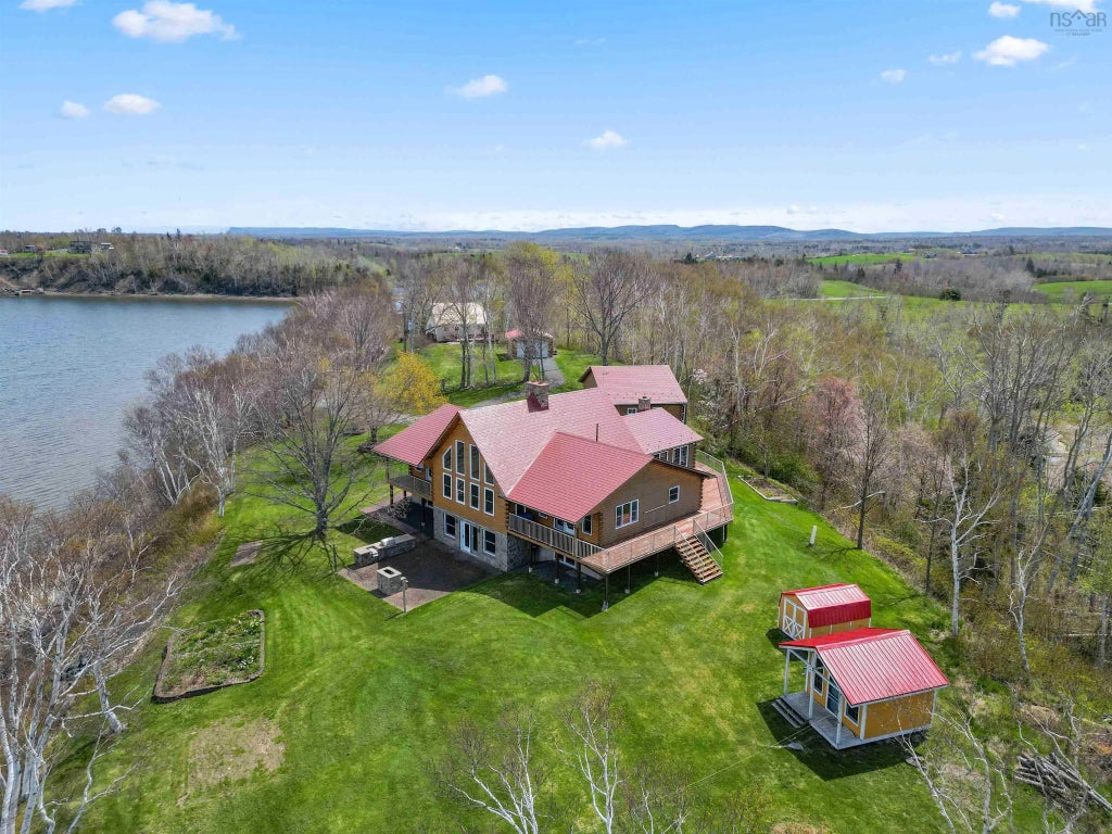 Serene and private best describes this year-round oceanfront property, with over 847 ft of shoreline waters on the Merigomish Harbor. The meticulously landscaped 2+ acre property is a perfect place to call home or even a seasonal getaway. This "Riverbend Log Home" (with wraparound decking ) is an ideal home for entertaining with a floor plan that flows seamlessly from room to room. The sunroom which features a stone fireplace is ideal for everyday gatherings and has a special area to read your book. The Great room boasts floor-to-ceiling windows, and a hand-crafted 16 ft stone fireplace - fantastic to curl up to on those cool evenings. The chef of the family will love the dream kitchen which has an endless amount of counter space, a custom center island and state of the art appliances. Dining room and kitchen are divided by a large bank of cupboards that house numerous styles of pullouts and glass displays. The spacious main level Primary rm offers an ensuite, walk-in closet plus access to a private covered verandah, where you can sit out and enjoy a beverage. The loft /flex space has endless uses including bedroom, artist room, den, etc.. The lower level will not disappoint! Consisting of a walkout to the stone patio, direct access to an outdoor kitchen and fireplace, a large rec room with a stone fireplace, 2 large bedrooms with ocean views, plus a workout/storage room, a full bathroom and more! The property houses a screened-in 12x16 gazebo, 34x24 detached garage (2 bays +workshop), 18x18 garage, 12x16 bunkhouse, and 12X8 garden shed. Completing the home is in-floor heat on both levels, a generator panel, and maritime metal roofs. Ideally located close to U picks and farm markets, Knoydart Farm cheese, Steinhart Distillery, Joggons Fossil Cliffs, and many other unique places!