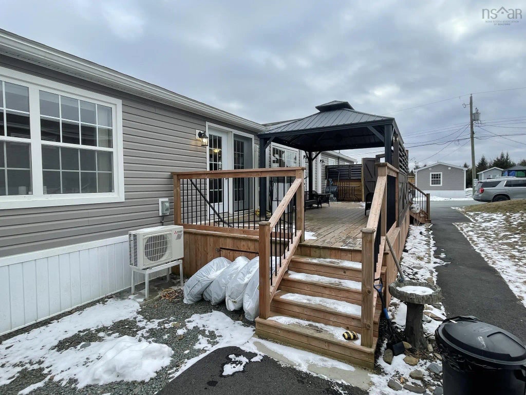 Affordable living close to everything! This 3 bedroom, 2 bath Maple Leaf home is just 4 years old with 6 years of LUX new home warranty remaining. With a multi-car paved driveway, new shed, landscaped yard and privacy deck with gazebo, this bright and spacious well maintained home is exactly what you’ve been looking for. So many extras! Primary bedroom with huge walk-in closet and ensuite bath with easy entry shower, large kitchen pantry, new fridge plumbed for water dispensing, large laundry room storage area, GenerLink generator hook-up, heat pump, French doors off the living room, open concept eat-in kitchen and high-end fit and finish throughout. You will love the large BBQ deck that has privacy fencing and is accessible from two sides. Eleventh Street is in the new section of the popular Timber Trails Mini Home Park and it backs onto green space including a family-friendly park with a basketball court, winter skating rink, sports field, picnic tables and walking trails. Timber Trails is hard to get into because once you’re here, you’ll want to stay! It has a great reputation for being safe, family oriented and welcoming. Pets are welcome too! You can walk or bike to Atlantic Playland and Hatfield Farm and a 10 minute drive takes you to Lower Sackville in one direction and Bedford in the other. This location feeds into great schools – Kingswood Elementary, Madeline Symonds Middle School and West Bedford High. You deserve to love where you live! Note: Lot fees include water & sewer.