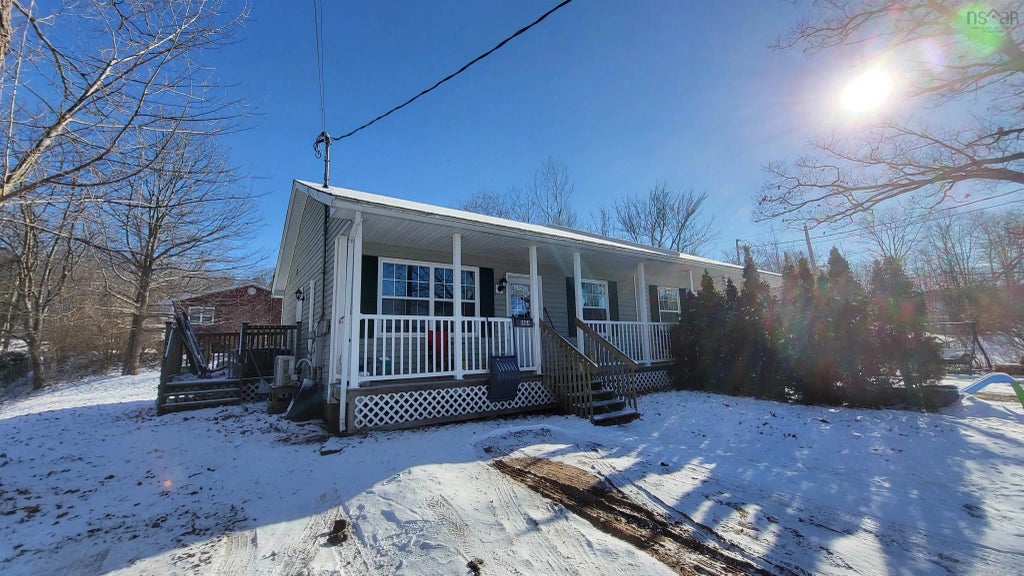 Perfect for 1st time buyers, starter family or a couple. Why pay rent when buying this is less expensive? With 5% down, at an interest rate of 4.5%, monthly mortgage payments roughly $ 1,250. Charming semi-detached boasts an open-concept design. The kitchen features natural wood cabinets, ample counter space, and a convenient pantry. The living room offers plenty of space to unwind after a long day. The home includes two spacious bedrooms and a bathroom with a full acrylic tub. A roomy closet houses a stackable washer and dryer, along with extra storage for household necessities. The exterior includes a full-length front veranda with vinyl railings and a side deck perfect for barbecuing. A shared shed in the back provides additional storage, and a crawl space accessible from the outside offers even more storage options. Minutes to amenities, close to downtown Kentville, Valley Regional Hospital, KINGSTEC. Includes 5 Appliances. 1406 Sanford also for sale, the 2 of them could be purchased as an investment (income and expenses could be made available).