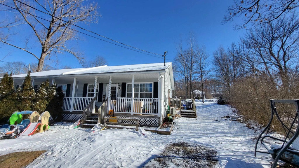 Perfect for 1st time buyers, starter family or a couple. Why pay rent when buying this is less expensive? With 5% down, at an interest rate of 4.5%, monthly mortgage payments roughly $1,210. Charming semi-detached boasts an open-concept design. The kitchen features natural wood cabinets, ample counter space, and a convenient pantry. The living room offers plenty of space to unwind after a long day. The home includes two spacious bedrooms and a bathroom with a full acrylic tub. A roomy closet houses a stackable washer and dryer and new Hot Water Tank, along with extra storage for household necessities. The exterior includes a full-length front veranda with vinyl railings and a side deck perfect for barbecuing. A shared shed in the back provides additional storage, and a crawl space accessible from the outside offers even more storage options. Minutes to amenities, close to downtown Kentville, Valley Regional Hospital, KINGSTEC. Includes 5 Appliances.