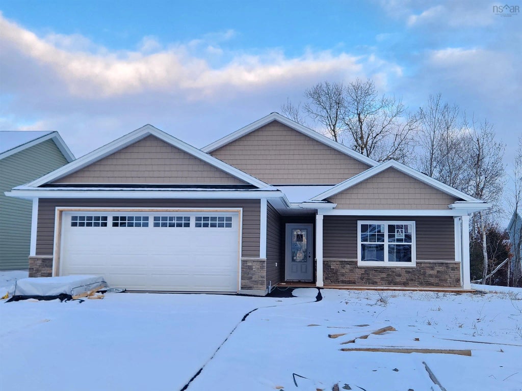 Welcome to Eagle Landing, one of the Annapolis Valley's most sought-after neighbourhoods! The “delicious”” featuring 3 bedrooms and 2 full baths. The beautiful open-concept kitchen flows into a large dining and living space, ideal for entertaining with the large island and cabinetry to suit every cooks needs . Check out the large covered back deck, perfect for enjoying relaxing evenings. The primary suite offers peace and tranquility with the ensuite being a real treat with double sinks and a gorgeous tiled shower. Two additional bedrooms and a conveniently located laundry room off the garage complete this wonderful layout. With landscaping, pavement, and a Lux home warranty included, this home is ready for you to move in and enjoy all the nearby amenities!