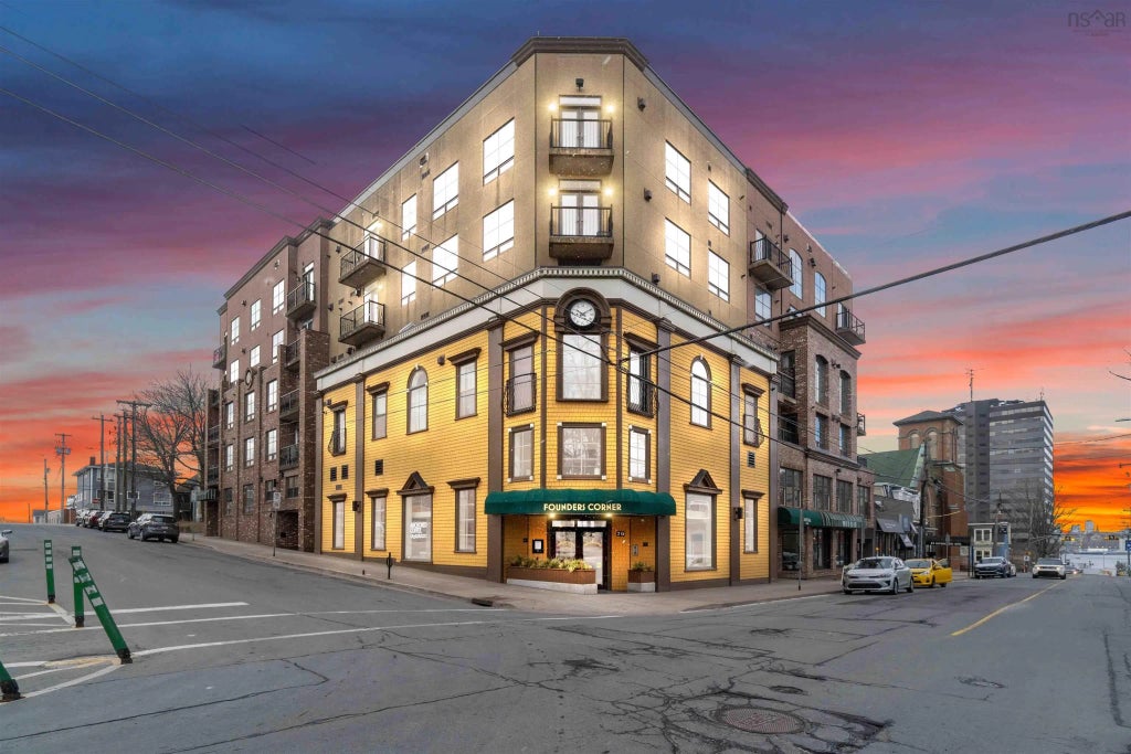 Enjoy luxury living with this rare opportunity to own a BOUTIQUE EXECUTIVE CONDO in an coveted residential condominium community. FOUNDERS CORNER sits on the land of the original Masons Lodge and the Police Barracks in the City of Dartmouth. Be welcomed with the imported Wrought Iron gate from a castle from the UK. Suite 204 is located in the Barracks wing of the building.The moment you walk into your foyer the stained polished etched concrete floors w Gaelic emblem will captivate you. To your left is a laundry room w modern front loading stacked washer & dryer with built in cabinet & sink, water purification system & built in power surge protection system for the whole house. Large windows boasting tons of natural light. This corner suite offers a beautiful 3 bedroom, 2 full bath home with seamless flow from the foyer, kitchen and living area to the expansive wrap around 260 sq ft balcony perfect for relaxation. Custom features include polished concrete floors, Low costs w natural gas heating, stove, dryer and Napoleon Italian inspired fireplace, 9 ft ceilings, crown mouldings, ensuite spa steam bath/shower w bidet, built in sound system, in-suite quiet efficient furnace manufactured in Italy. Cape Breton red granite vanity counter tops, abundance of built in cabinets and closets, upgraded stainless appliances with garburator. Beautiful finishes throughout make this condo a true gem. Bonus of this unit is the 2 storage units w heated underground parking with carwash. Well managed, pet friendly, elevator, live in super and feel safe w supreme security. Enjoy breathtaking views from the 2 rooftop terraces, reserve the bbq terrace to entertain with your family and guests all year round, complete with a solarium. This central location offers easy access to a wide walkable range of amenities including great cafes, craft breweries, niche shopping, farmers markets, top restaurants, library, ferry terminal and transit.
