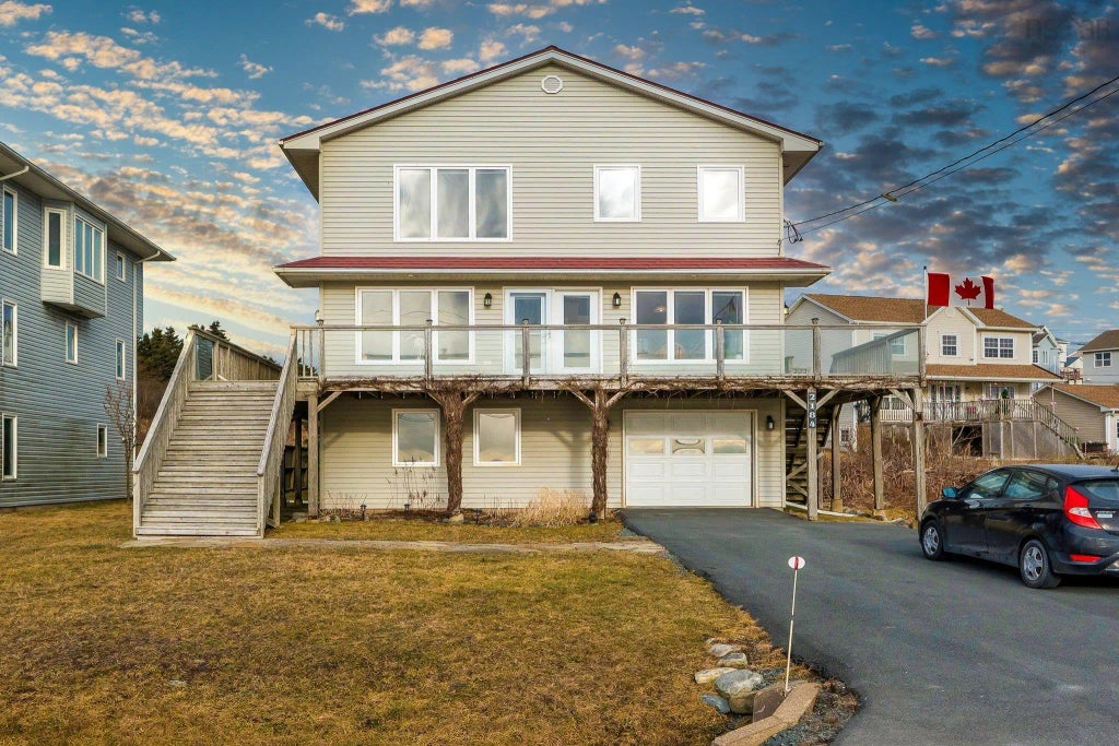 Coastal Living at Its Finest. Welcome to 2184 Shore Road, where breathtaking ocean views and modern comfort blend seamlessly in this immaculately maintained 3-bedroom, 4-bathroom home. Nestled along Nova Scotia’s stunning coastline, this property offers the perfect balance of elegance and tranquility. Step inside to an open-concept main floor flooded with natural light, thanks to large windows that capture panoramic views of the ocean, Devil’s Island, & Halifax Harbour. A cozy propane fireplace anchors the living space, creating a warm and inviting atmosphere. The bright, spacious kitchen boasts new stainless steel appliances, ample counter space, and a breakfast bar, while the adjoining dining area opens onto a wraparound 360° deck perfect for entertaining or simply soaking in the coastal scenery. The main floor also features a convenient laundry area, a private home office, & a 2 piece bathroom. The top two levels come complete with elegant hardwood floors while all the bathrooms have tile with in-floor radiant heat. Upstairs, the primary suite is a private retreat, offering stunning ocean views, a walk-in closet, & a 3 piece ensuite with an air-jet tub. Rounding out the upstairs are two additional bedrooms, a 3 piece bathroom and all have ocean views. The fully finished basement provides extra living space with a rec room, 2 piece bathroom, utility/storage room, and direct access to the garage. A walkout leads to the beautifully landscaped backyard, offering even more space to enjoy the fresh sea breeze. Located just minutes from Hartlen’s Point Golf Course, scenic walking trails, local beaches, great schools, and the charming boardwalk at Fisherman’s Cove, this home is an exceptional opportunity to experience the best of coastal living just 20 mins from downtown. Don’t miss your chance to own this stunning ocean-view home! Schedule your viewing today.